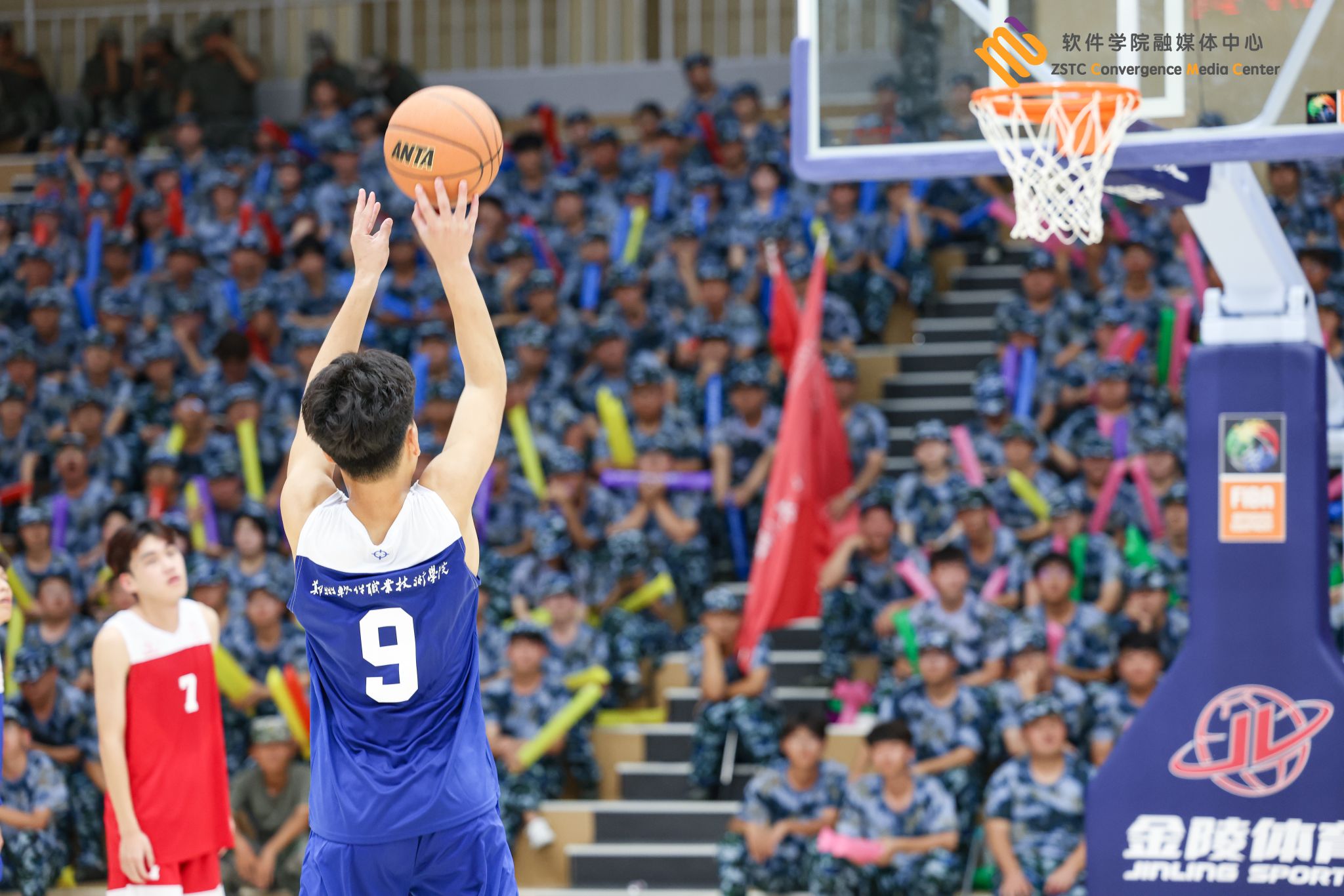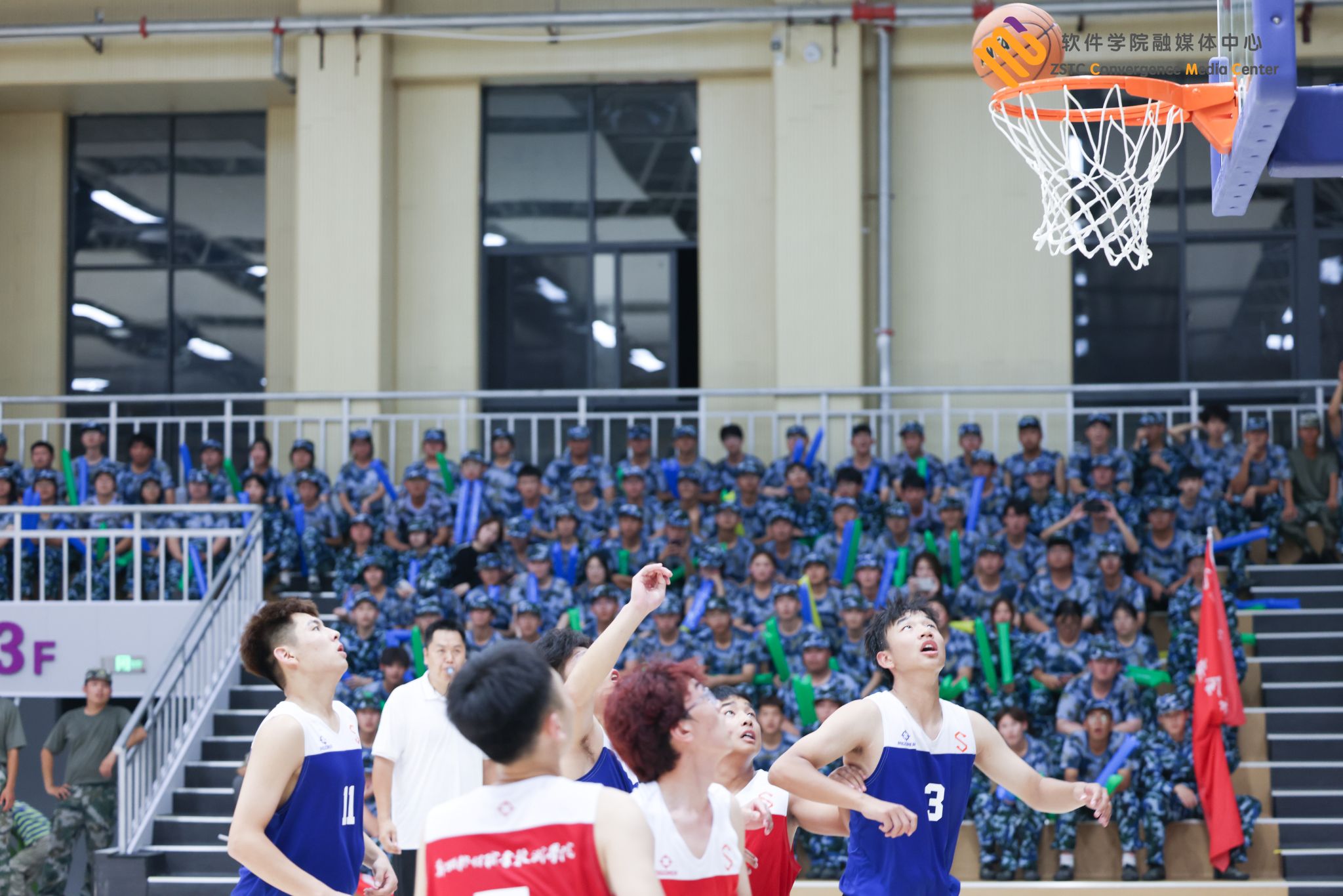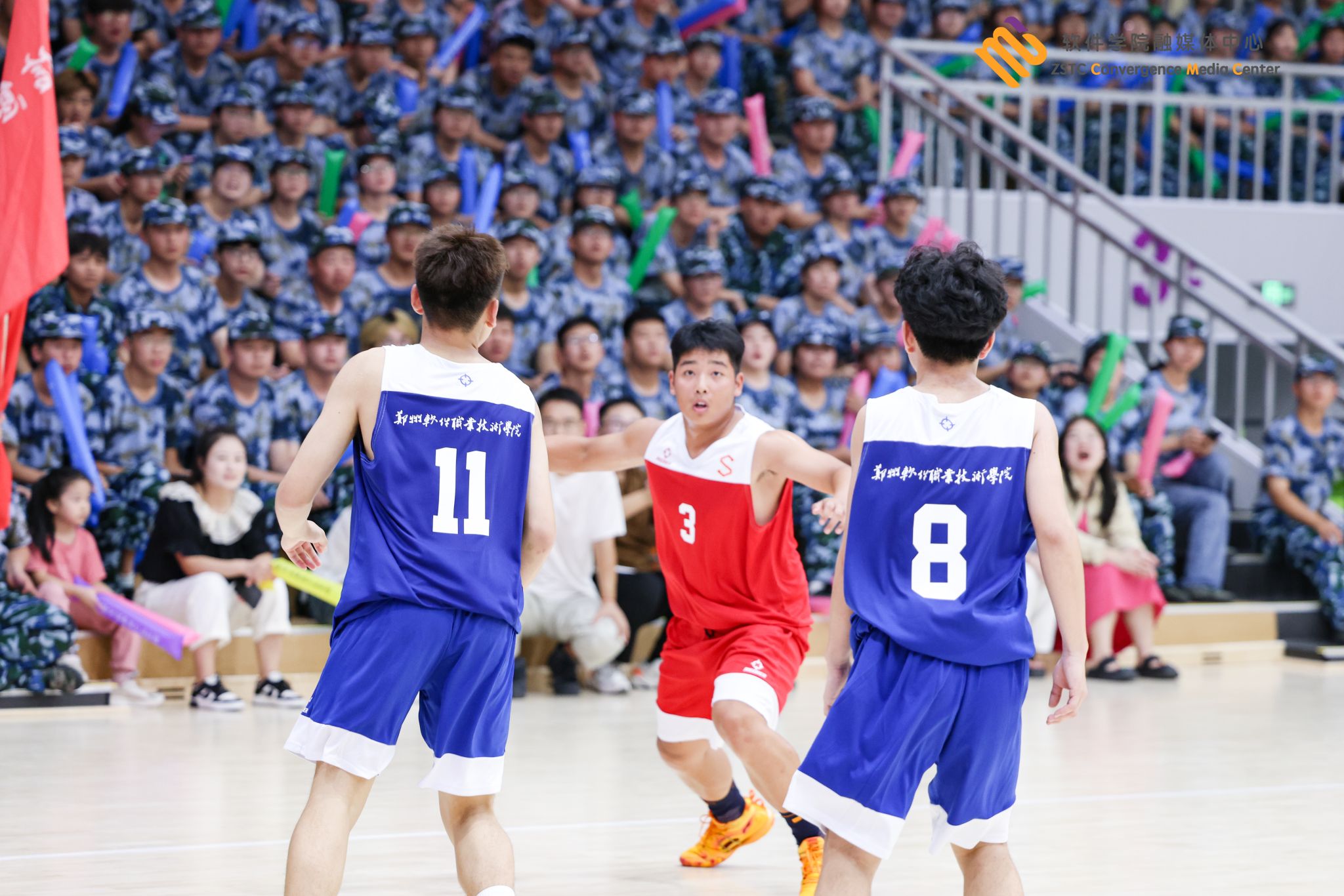 随着教练一声哨向👩🏼🔬,球员一跃而起,篮球在球员手上穿越,一次三分投篮🐥♉️,一次定点投球,无不震撼全场,奔跑、起跳、“盖帽”,赛场运动员们你争我抢,不断投篮,只为命中篮筐🧑🏼💻;赛场打得火热,台下也不甘示弱,锣鼓喧天,班旗招展📡🧑🏭,各班各系为自己支持的球员队伍欢呼🕌、呐喊👩🏽🍳🧑🏿🎨,现场好不热闹!