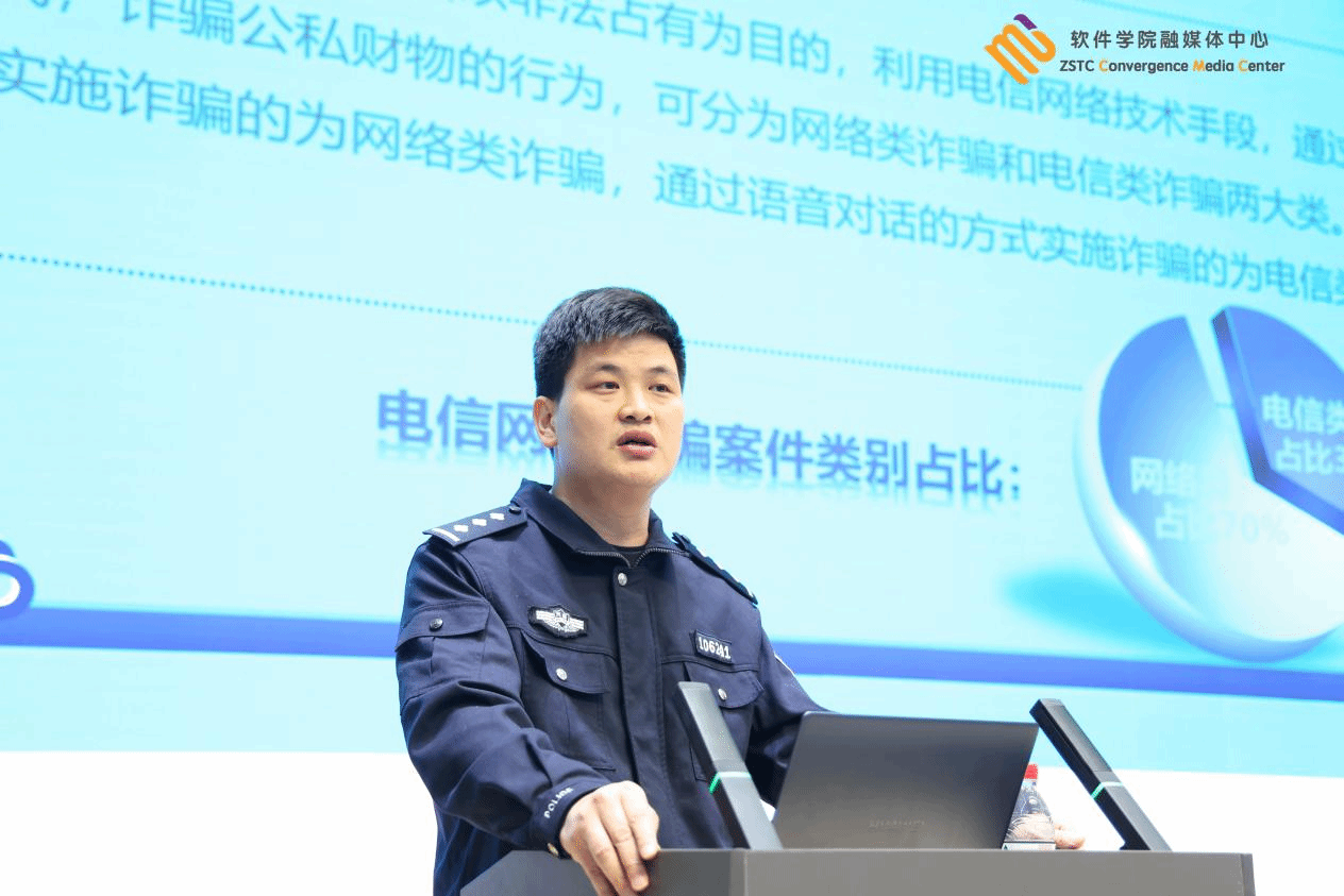 讲座以预防电信(网络)诈骗知识为主题,张义中中队长主讲。张义中队长从警多年👡,办案经验丰富,他结合现实生活中的真实案例和详实的数据,向同学们介绍了刷单返利兼职、冒充网购客服、冒充熟人、冒充贷款客服👨‍🚒、虚假投资理财平台、跑分等常见电信诈骗方式,揭穿骗子常用的诈骗伎俩;详细讲解了新型电信网络类诈骗类型的本质及特点♎️,并提出了有针对性的应对防范措施,叮嘱同学们要牢固树立反诈骗意识,切忌贪小便宜👩‍👩‍👧,一旦被骗👲🏼👨🏻‍🎓,尽快掌握对方的有罪证据并迅速报警💃🏿,要切实维护好自身的合法权益。
