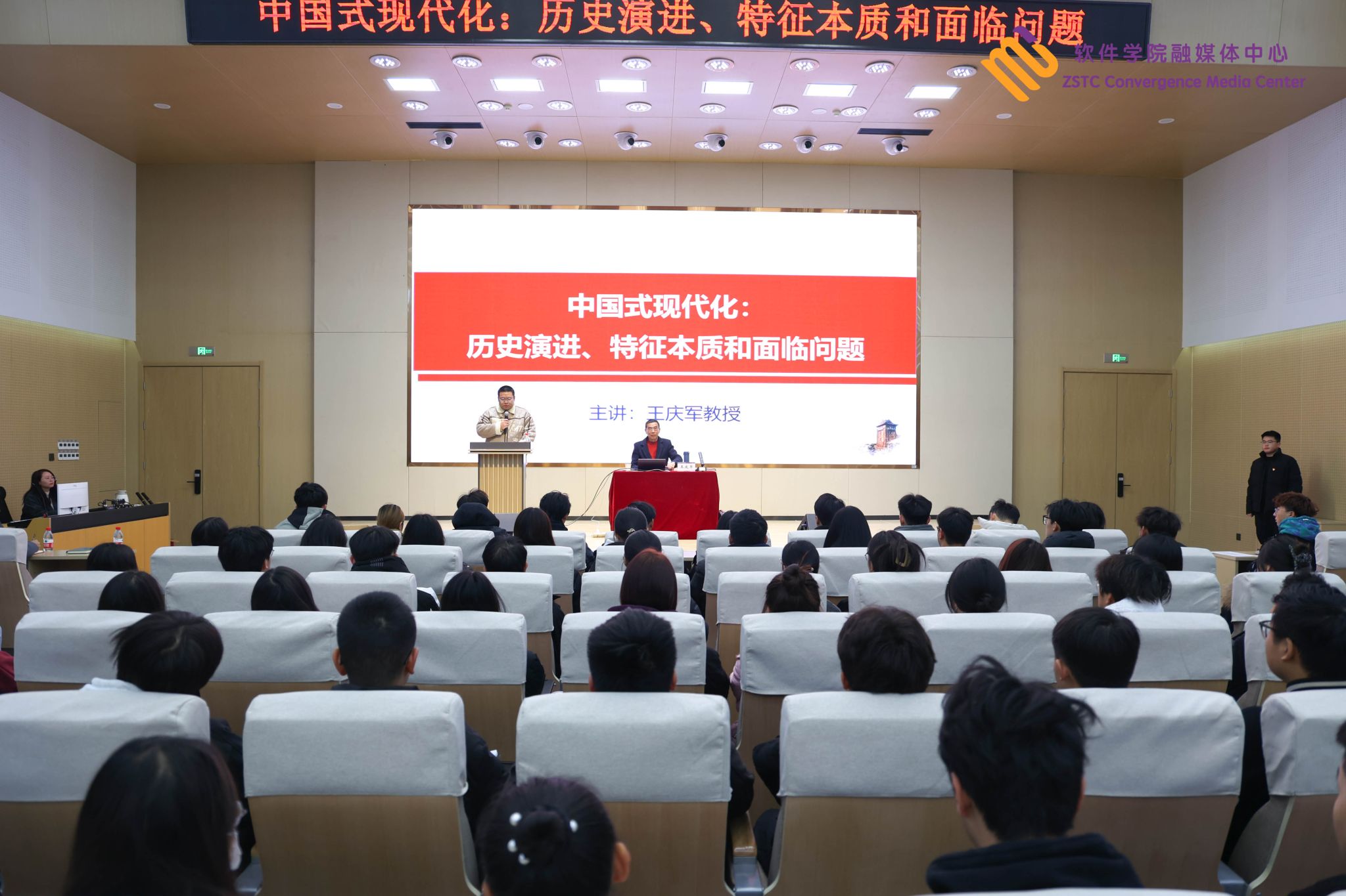 为贯彻党的二十大精神,学习贯彻习近平新时代中国特色社会主义思想主题教育,落实省委教育工委、省教育厅2023年全省教育系统“百名法学家百场报告会”法治宣讲活动有关要求🪶,11月24日,彩神邀请郑州工商学院法学三级教授王庆军同志,为我院作《中国式现代化 历史演进、本质特征和面临问题》主题报告。部分中层干部🙏🏻、教师代表、学生代表共计三百余人参加报告会🎼,报告会由党委宣传部部长李继川主持。