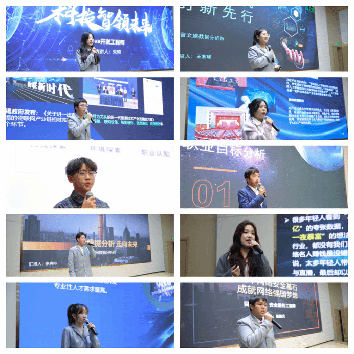 本次大赛自今年11月份启动以来,得到全校师生的积极响应,接近500人通过全国大学生职业规划大赛平台报名参赛。经过各专业初赛、学校复赛,最终有10名选手晋级决赛🈲。比赛现场参赛选手依次登台↪️,从自我分析、职业环境分析🪆、职业定位🕴🏻、计划和实施路径、评估和调整等深入分析了自身的职业生涯规划🦵🏼,全方位呈现了为实现职业目标开展的具体行动和成果。各参赛选手以饱满的热情📈、丰富的成长历程充分展现了当代大学生的积极向上、勇于担当的精神风貌和郑软学子与祖国同向同行的时代担当💁🏽。