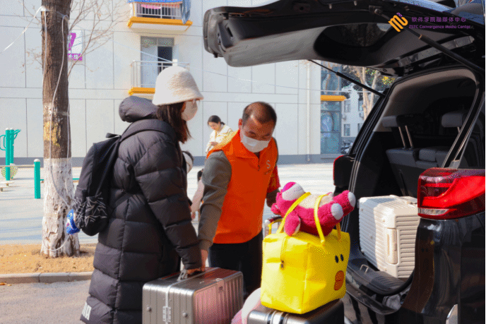 1月12日🕵️‍♀️,学校国旗广场一字排开20辆私家车🧠🤪,教师党员们准时集合,迎接各位“软籽们”,教师入党积极分子也投入工作中🌈,协助学生们搬运行李上车,组织安排交通🟠,校园内热热闹闹,充满着爱的氛围🥷🏻。行驶途中,教师们与学生融洽沟通,交谈学生在校生活🚣、考试情况、回乡打算等话题🚶🏻‍♂️‍➡️。