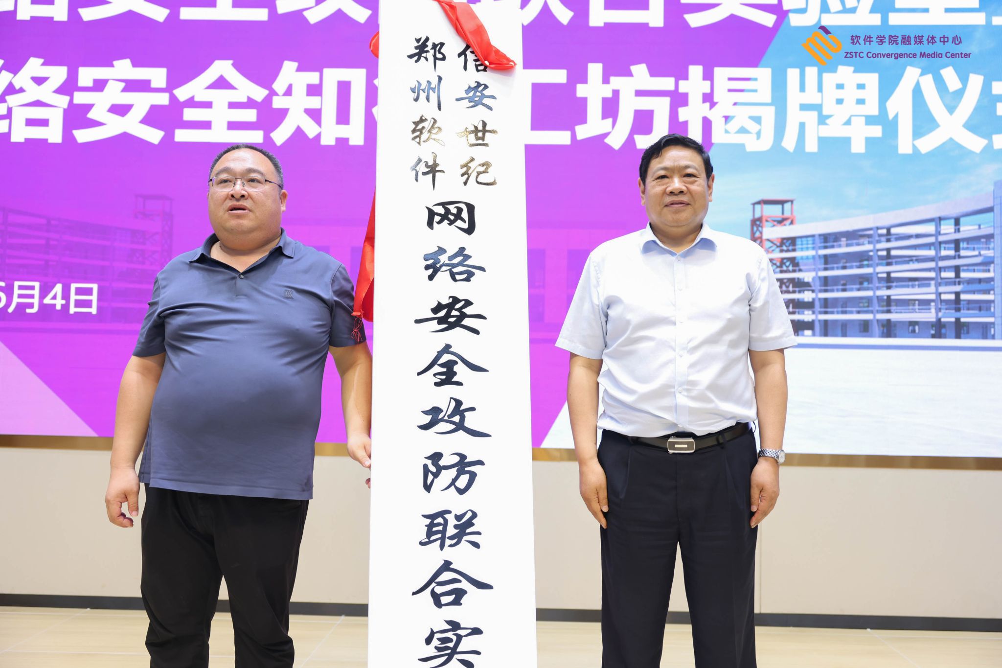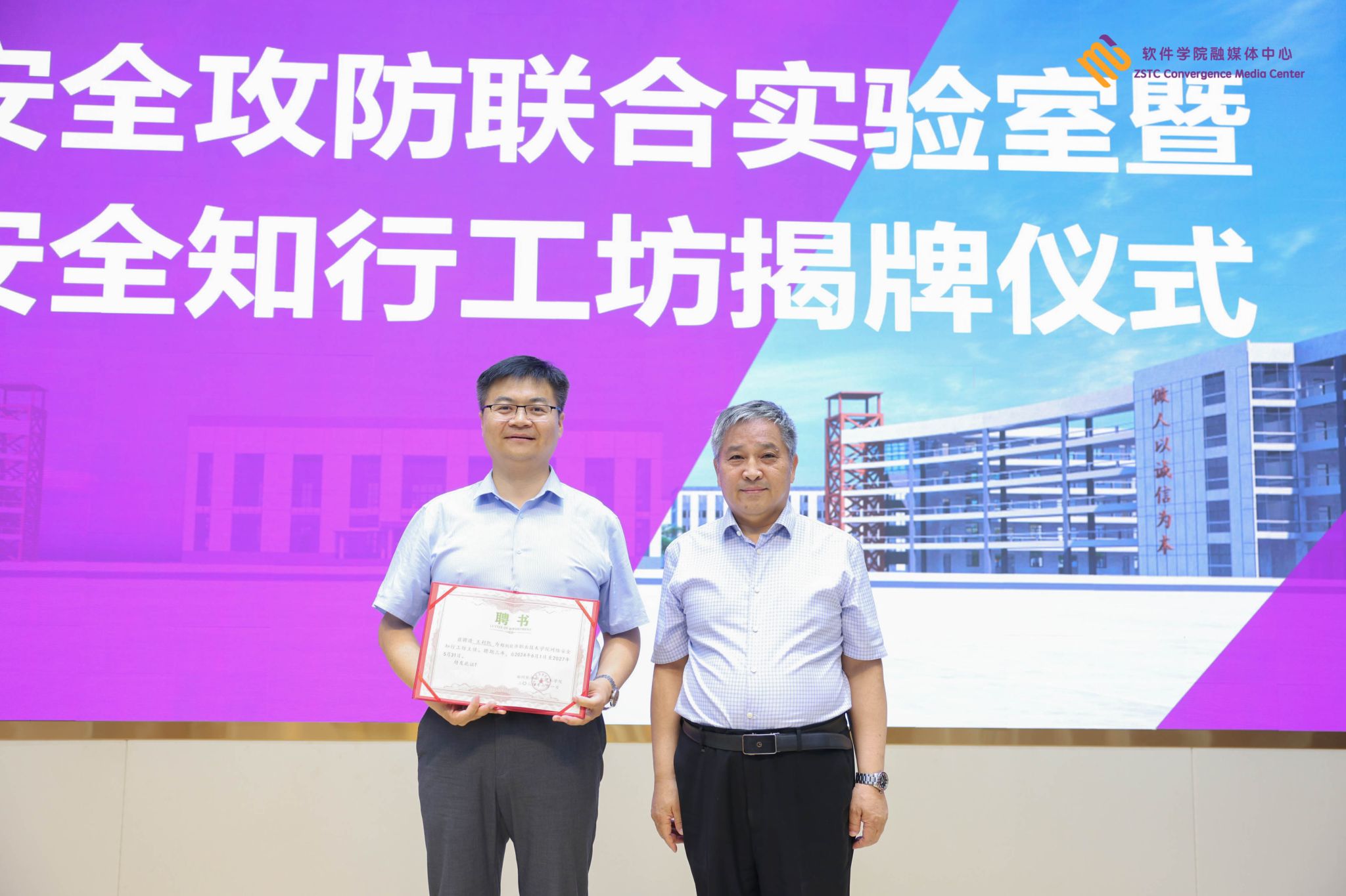 彩神校长秦方奇🧑🏿🔧、河南信安世纪科技有限公司副总经理尚夏共同为“网络安全知行工坊”揭牌