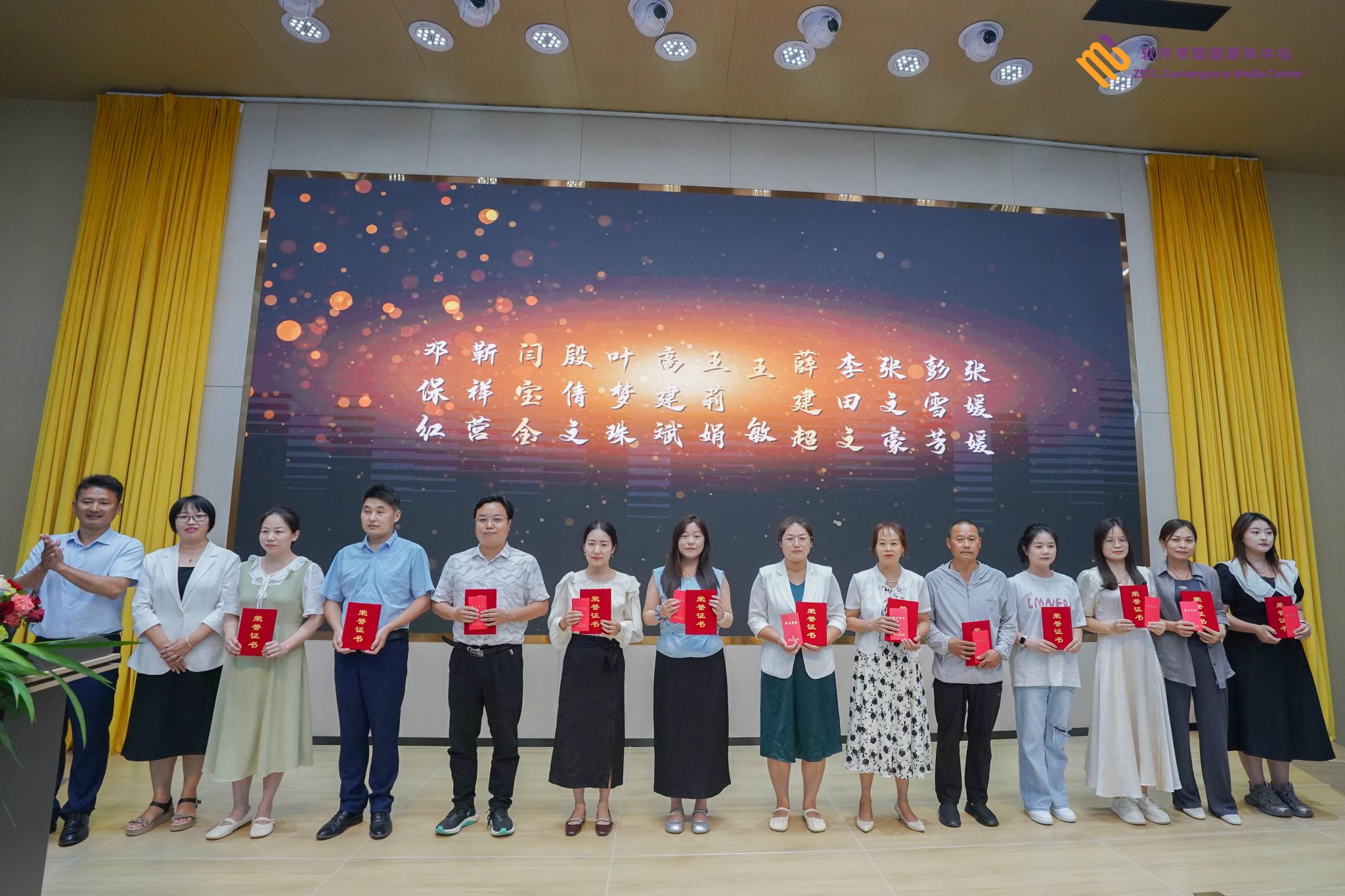 学校领导为受表彰的教职工和先进集体颁发荣誉证书。