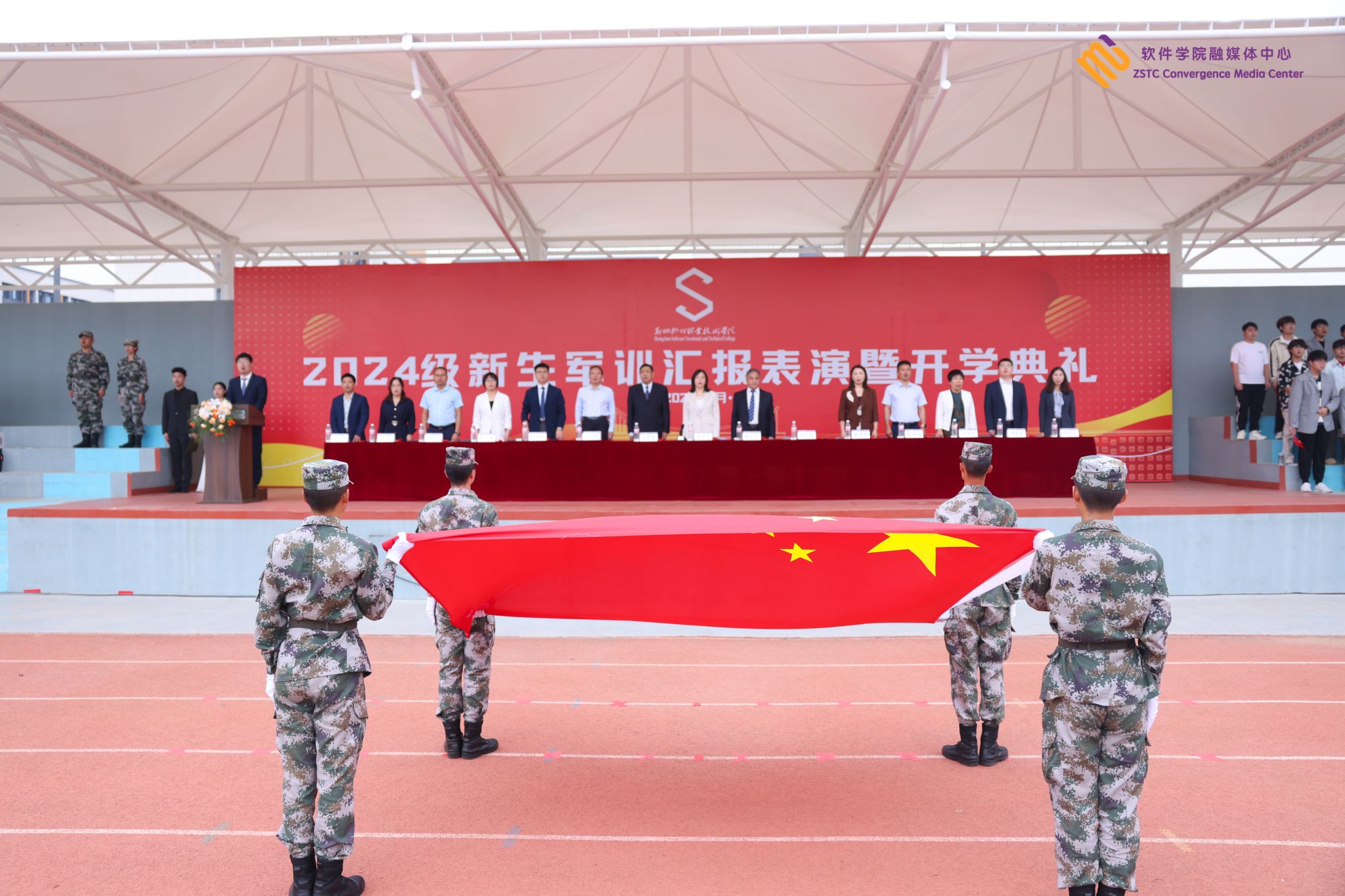 校长秦方奇教授致辞,他向承训教官和为军训工作付出辛勤汗水的老师们表示亲切慰问和衷心感谢🔦,向顺利完成军训任务的同学们表示热烈的祝贺。同时,以《立足新城 服务新产业 培育时代新人》为题为2024级新生讲授“开学第一课”👩🏻🏫。他从“彩神是一所什么样的学校?同学们在这里将要成长为什么样的人才✯?”两个问题入手👶,为新生讲授一份满意的答卷🧛♀️,并对新生提出了三点建议❕,做一位新时代的求知者🧜🏽♂️🏃♀️、做新时代的创新者、做新时代的求实者⏯,劝诫大家不负大学时光,努力成为一名知行合一、德技双修、智情并进,富有家国情怀和创新精神的高素质技术技能人才。