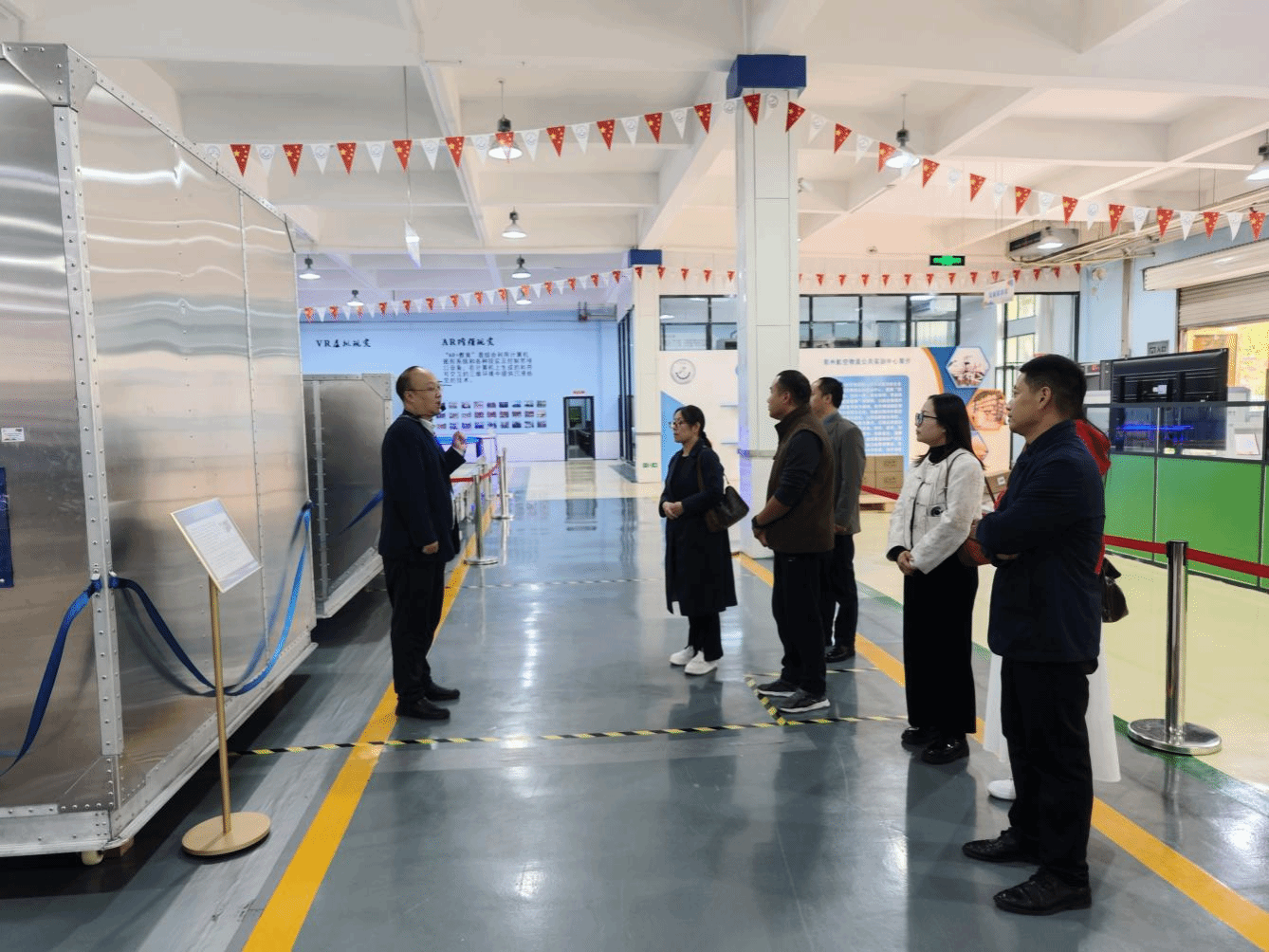 下午,在河南新世纪拓普电子技术有限公司总经理韩尊胜的陪同下,我校一行深入航空物流公共实训中心开展专项调研活动🙏🏿。基地培训讲师详细介绍了实训中心的全自动立体库设备区🛟、输送机设备区、库位堆垛区、生产装配区等多个实训区域的功能特点💶、设备配置及实操流程,使参观人员直观而深入的了解物流的运作。