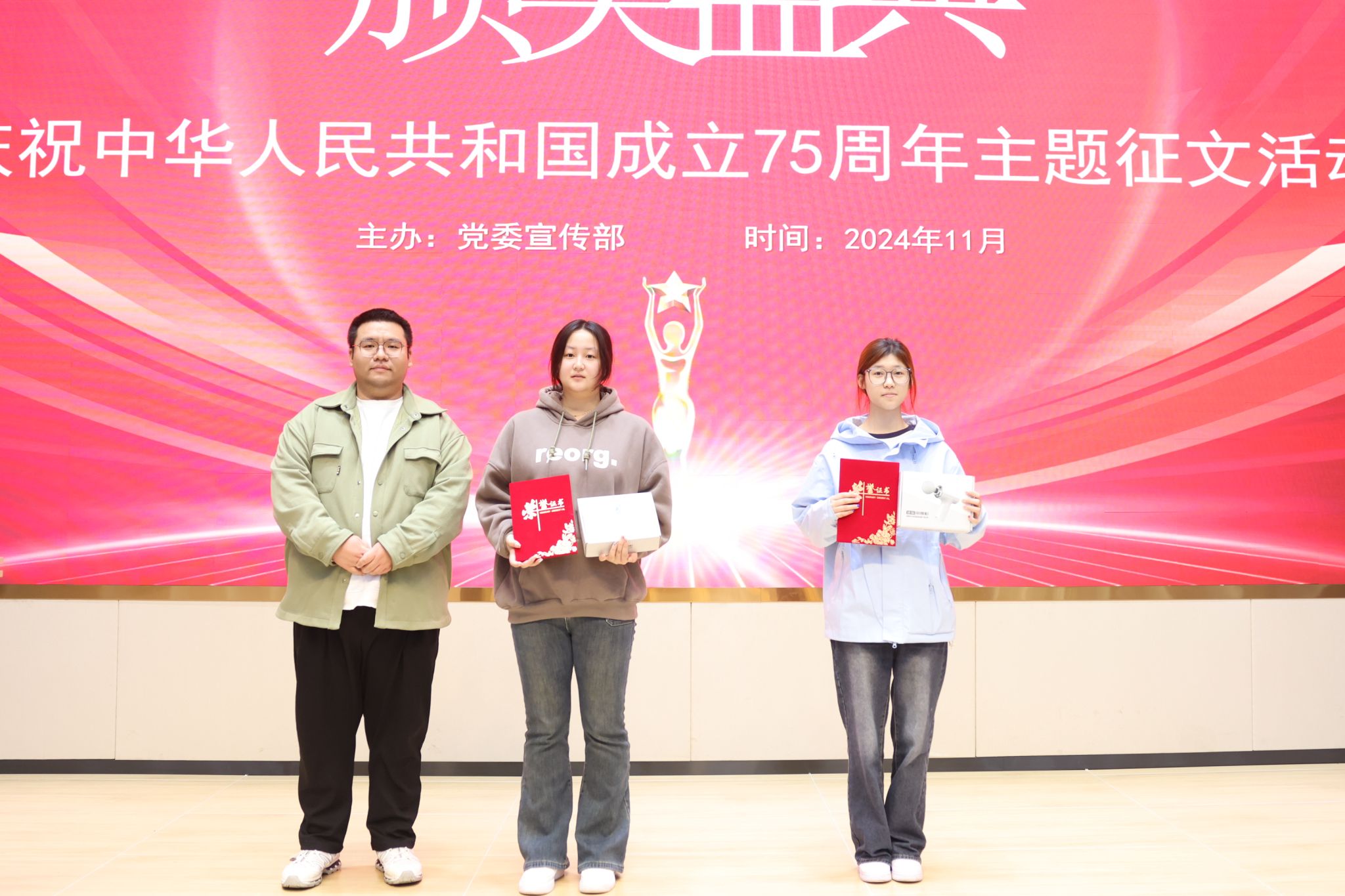 11月14日,由彩神举办庆祝中华人民共和国成立75周年主题征文比赛颁奖典礼在图书馆报告厅举行。校党委副书记郑丽娜,党委委员、宣传部部长李继川出席本次典礼并为获奖选手颁奖。本次颁奖典礼由融媒体中心指导老师刘彤玥主持🫅🏽。