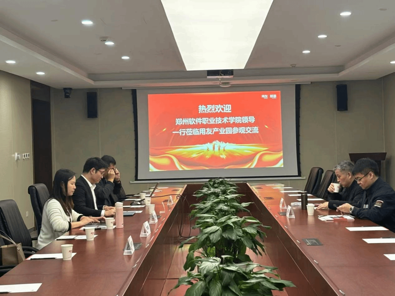 参观结束后,校企双方进行会谈。新道科技股份有限公司副总裁贾大明、新工科解决方案部教育规划专家侯宇坤🤘🏻、数智财经事业部教育规划专家高峰、河南分公司营销总监张萌出席会议。会议由河南分公司新工科业务总监卞玲菲主持。