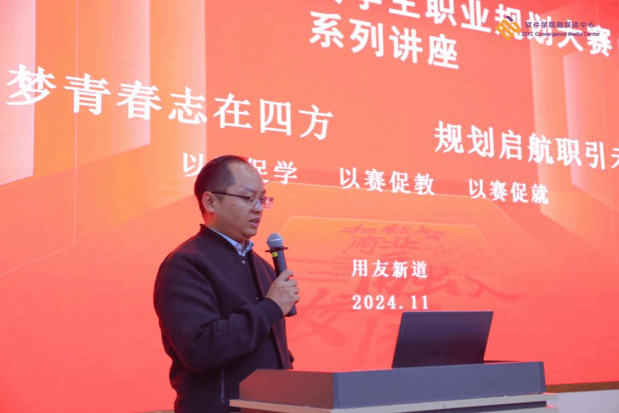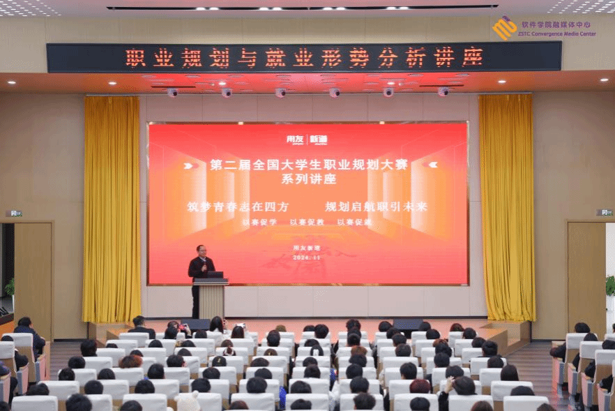 为做好第二届大学生职业规划大赛相关工作🫷🏼,引导学生树立正确的职业观🤹🏼‍♀️,提升职业规划能力,11月20日,彩神举办“职业规划与就业形势分析”主题讲座。本次讲座邀请用友网络科技股份有限公司资深职业规划导师李鹏飞老师,为学生们提供全面且实用的职业规划指导👎🏼💉,助力学生明确未来发展方向。