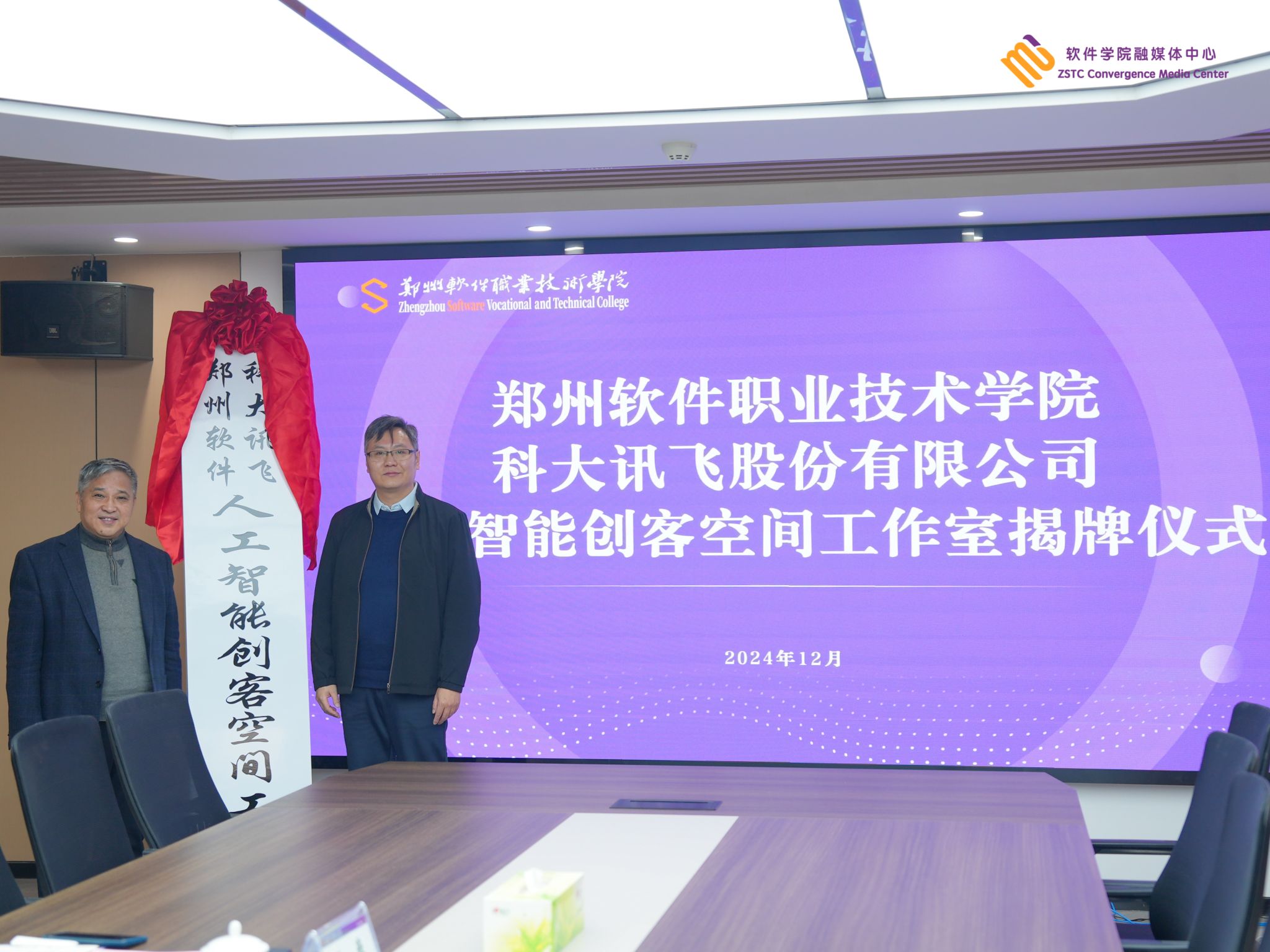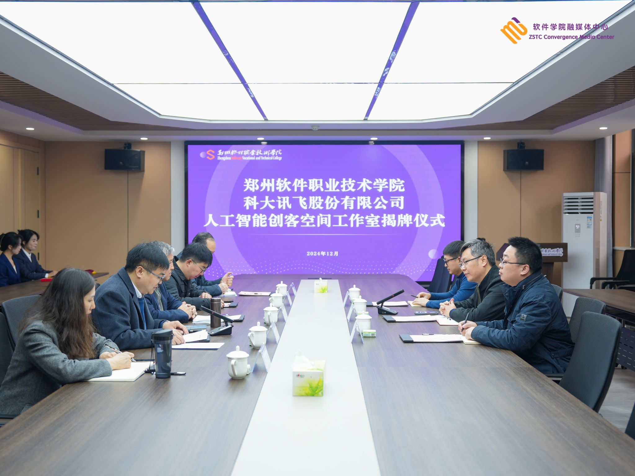 2024年12月10日上午,人工智能创客空间工作室揭牌仪式在我校行政楼205会议室隆重举行。科大讯飞产教融合业务线区域总监韩海鹏🥔、驻校项目总监陶磊、驻校运营经理熊继亮,彩神校长秦方奇🌍、副校长许心思、人工智能学院院长王巍以及相关教师代表参与仪式🧕。仪式由教务处处长王利凯主持🙋🏼♀️。