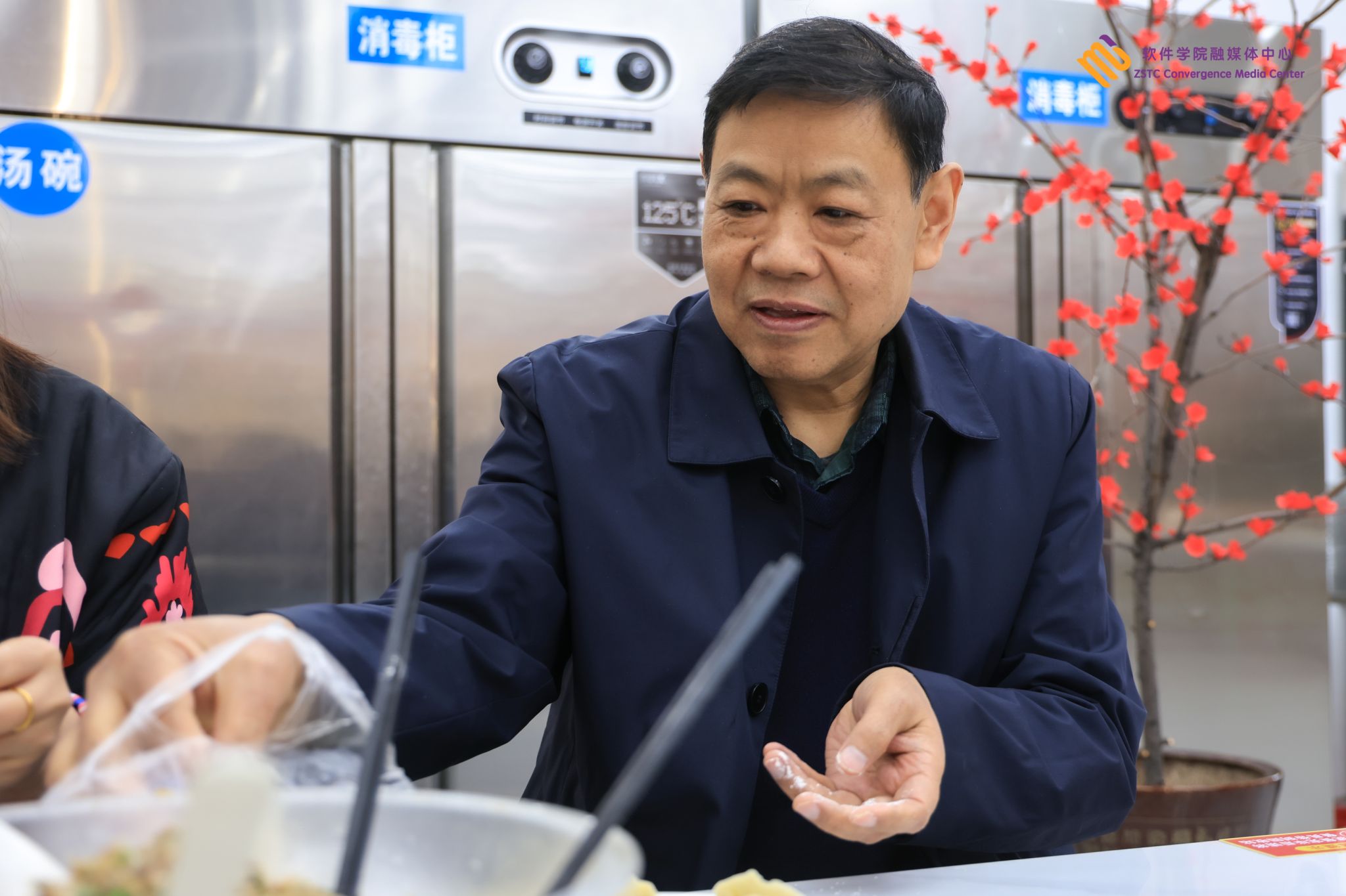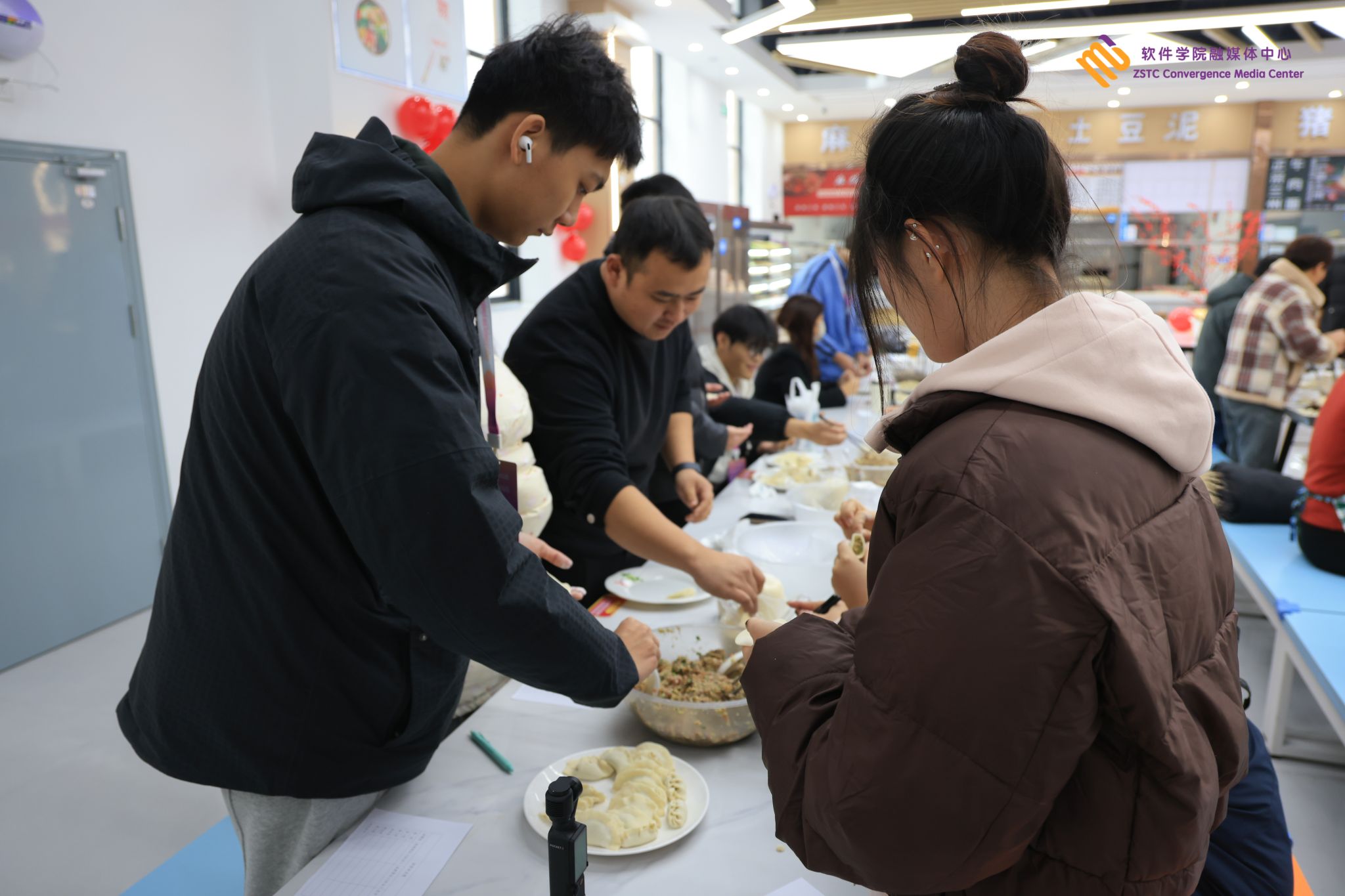 餐厅里🔥👚,师生代表们欢聚一堂👨🏿‍🦱、其乐融融。经验丰富的老师们还时不时地与同学们分享包饺子的心得与技巧👨‍👩‍👧‍👧,欢声笑语回荡在餐厅。