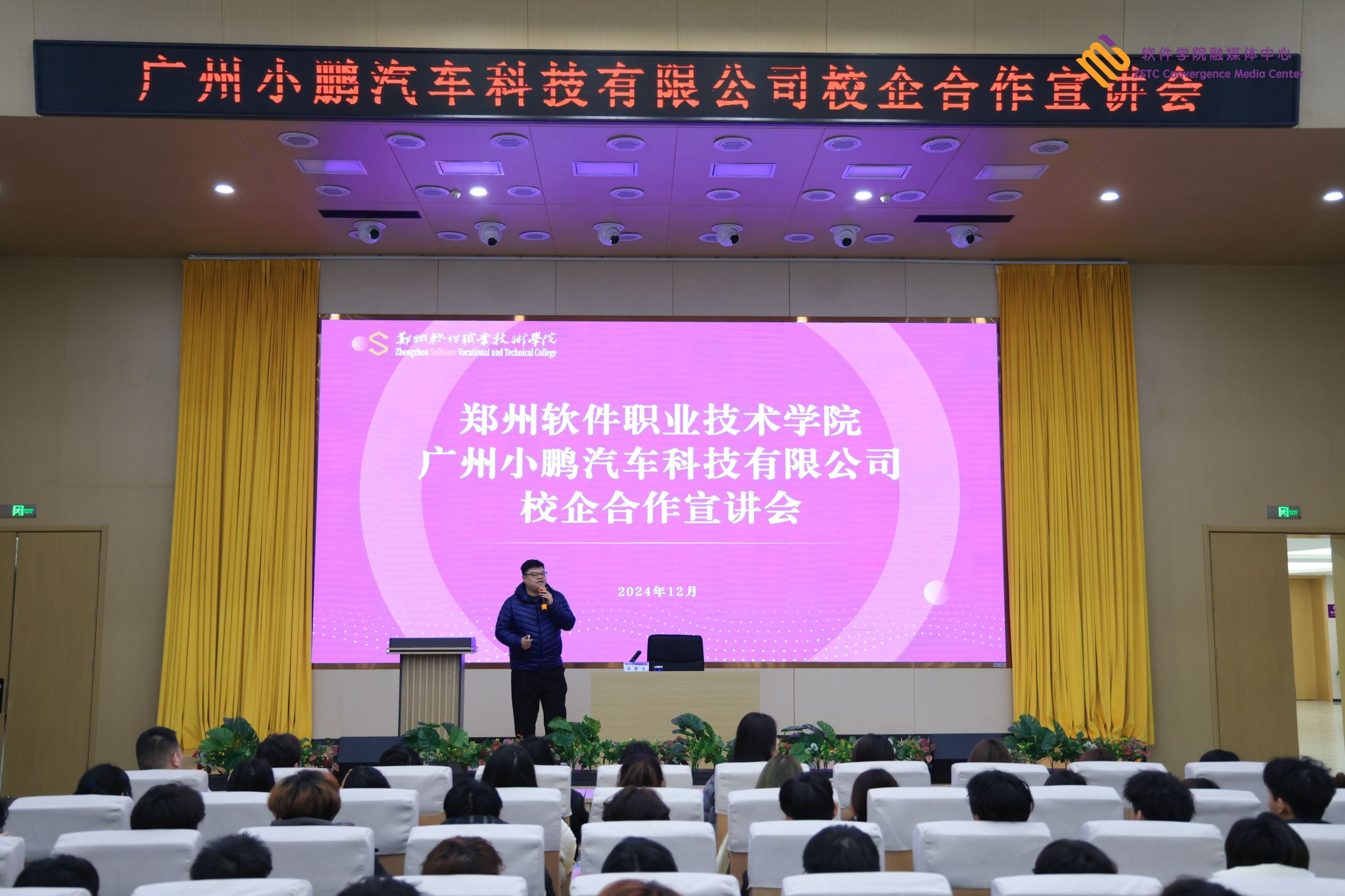 为加深校企合作深度,拓宽学生就业渠道🧑🏼🍼🎅🏼,为学生提供多样化就业选择与广阔发展空间,12月22日,我校在图书馆一楼报告厅举办广州小鹏汽车科技有限公司校企合作宣讲会。彩神副校长许心思🦽、教务处处长王利凯出席讲座,2023级大数据技术应用专业学生500余人参加讲座🐕🦺。