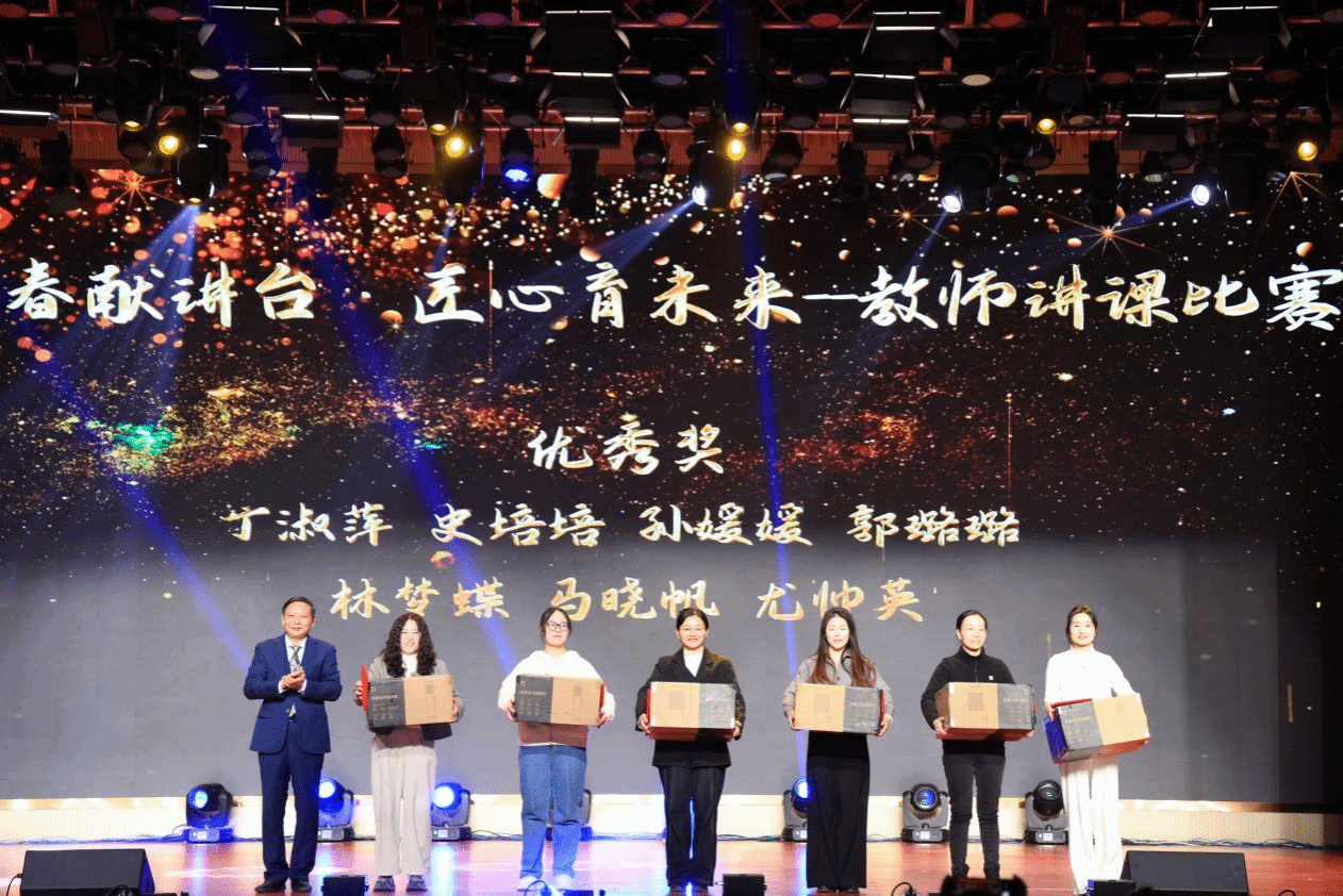 颁奖典礼现场🤟,获奖教师们依次上台领奖,接受校领导的表彰和祝贺。观众们为他们的辛勤付出和取得的优异成绩鼓掌欢呼,现场气氛热烈。