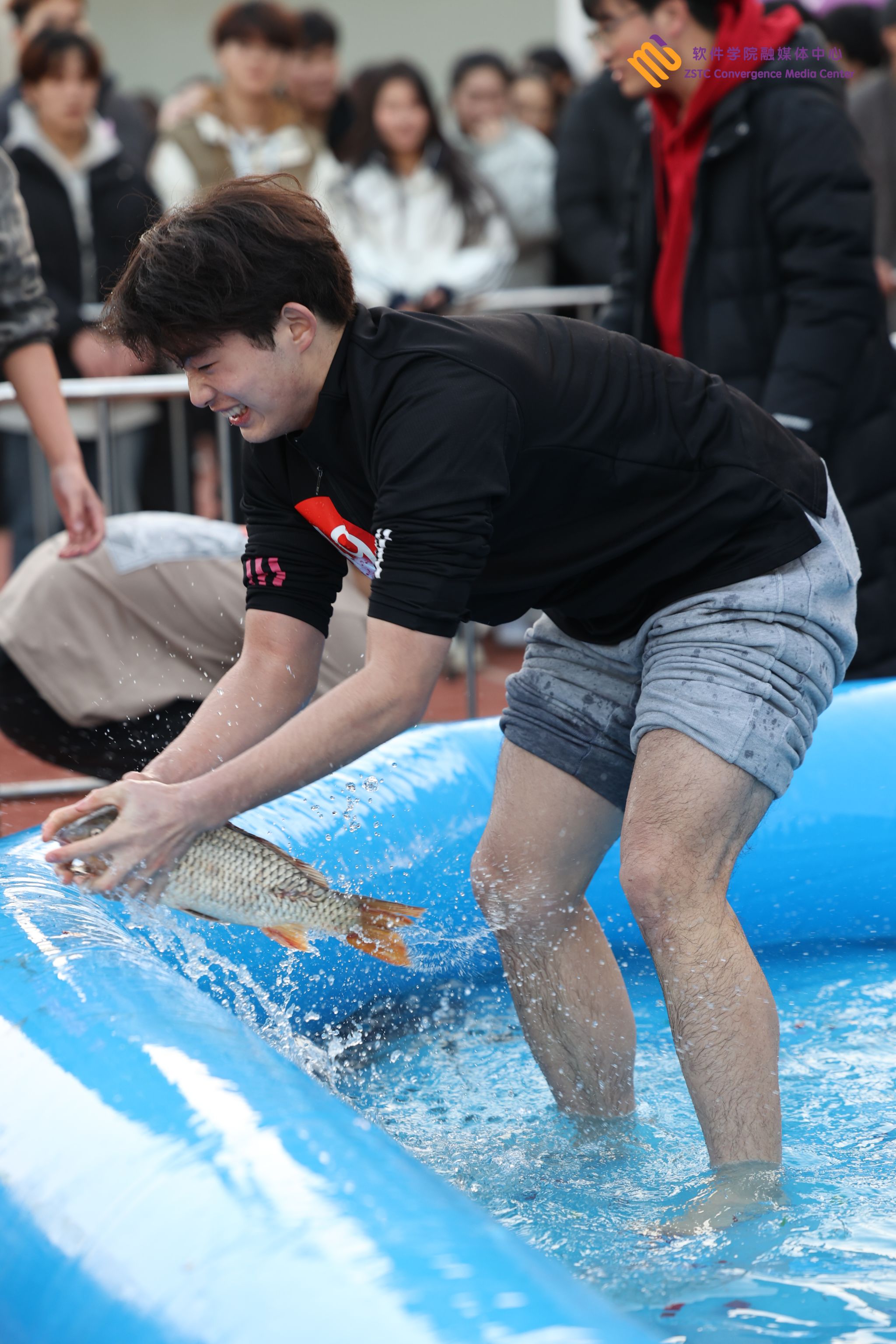趣味游戏活动中,抛绣球🤘、贪吃蛇等近20个项目使学生们玩得不亦乐乎🍨,不停闯关卡集齐印章只为赢得自己心仪的奖品𓀑,喜笑开颜之间尽是满足☄️。“抓锦鲤”是活动的重磅环节👼🏼,同学们你追我赶🪸,精准捕捉🐳,以期获得“锦鲤之运”🤿。