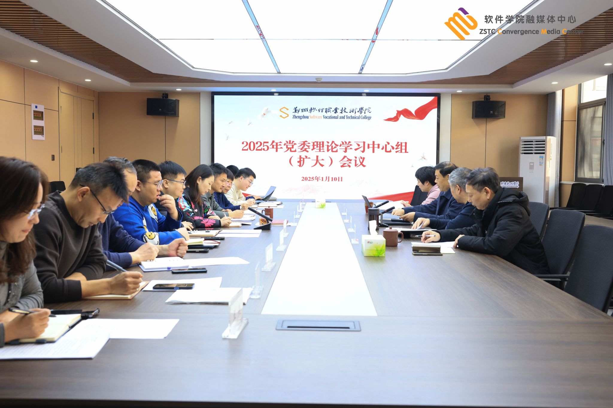2025年1月10日🫲🏻,我校党委理论学习中心组(扩大)第一次集体学习会议在行政楼205会议室举行,会议由党委书记孙振营主持,党委班子成员,在校中层干部参加会议。
