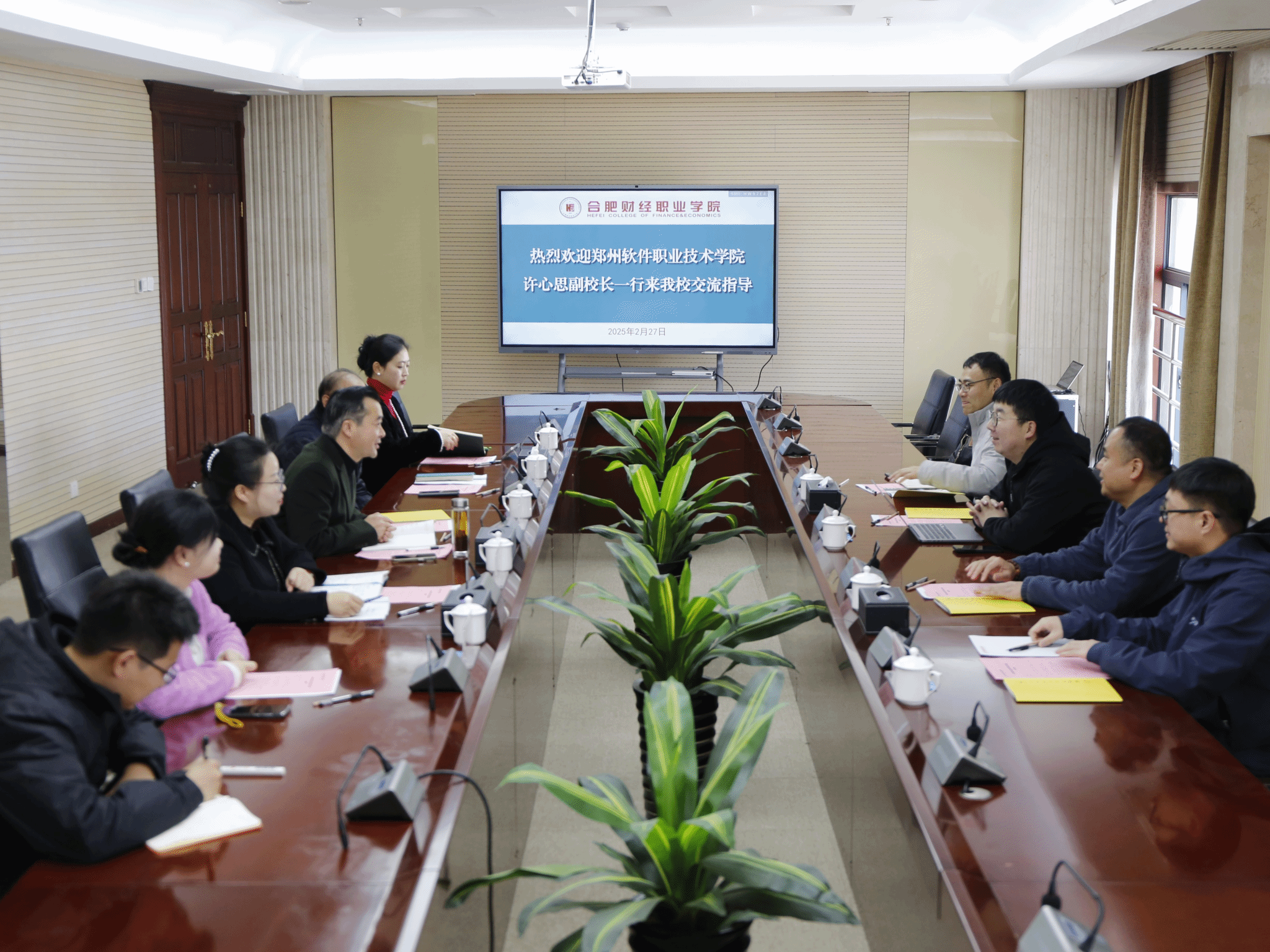 上午👂🏻,我校一行参与了由合肥财经职业学院组织的交流座谈会。会上☂️,副校长桂立志对我校一行的到来表示热烈欢迎,双方就实习实训体系建设🤽🏼♀️、人才培养模式创新🧑🏼💼、专业特色打造等核心议题展开了深入而富有成效的讨论。