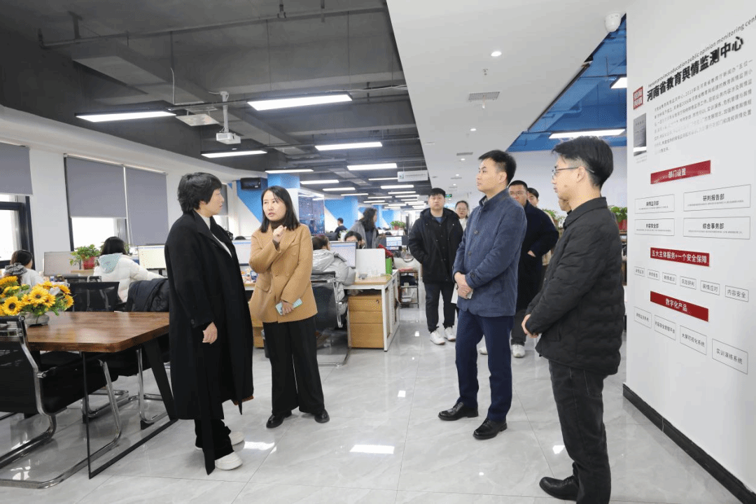 在河南策知科教有限公司副总经理😚、河南省教育融媒体运营中心副主任刘棒,河南策知科教有限公司副总经理🦤、河南省教育舆情监测中心副主任柴静的陪同下🤵🏽‍♀️,郑丽娜书记一行参观了该公司的融媒体动态感知平台、选题报送平台🦹🏽‍♀️、媒资平台👨🏽‍🏭、内容安全监控平台、高校舆情态势感知平台等,了解相关产业布局和未来发展规划。