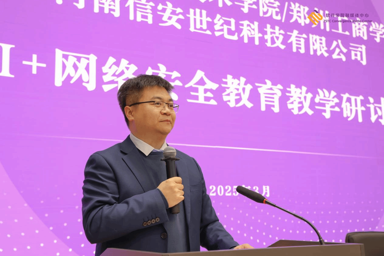 在主旨报告环节,三位专家带来前沿洞见👨🏻🎓:郑州大学张坤丽教授以《基于课程知识图谱的教学改革探索及实践》为题,系统阐释知识图谱在智能化教学中的应用价值;黄河科技学院秦记峰教授结合《AIGC赋能教学科研及大模型本地化部署》报告🧸,分享大模型技术落地的实践经验👩🏿💻;河南经贸职业学院张富宇主任则聚焦高职教育,详解《信息安全人才分层培养探索与实践》,提出“基础技能-实战能力-创新素养”三级培养体系,引发广泛共鸣🙋🏼♀️。