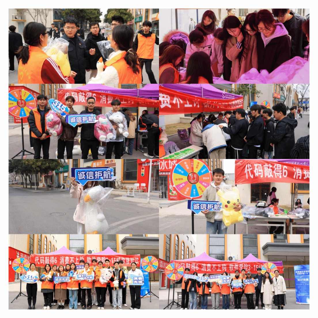 活动一是以“维权意识驻校园,诚信消费伴我行”为主题的有奖竞答活动🚾,3月12日至3月13日中午在校园餐厅门口进行现场答题抽奖活动,吸引了大量学生广泛参与,活动不仅提升了学生的维权意识,还让他们在游戏中学习到了实用的消费权益知识😶。