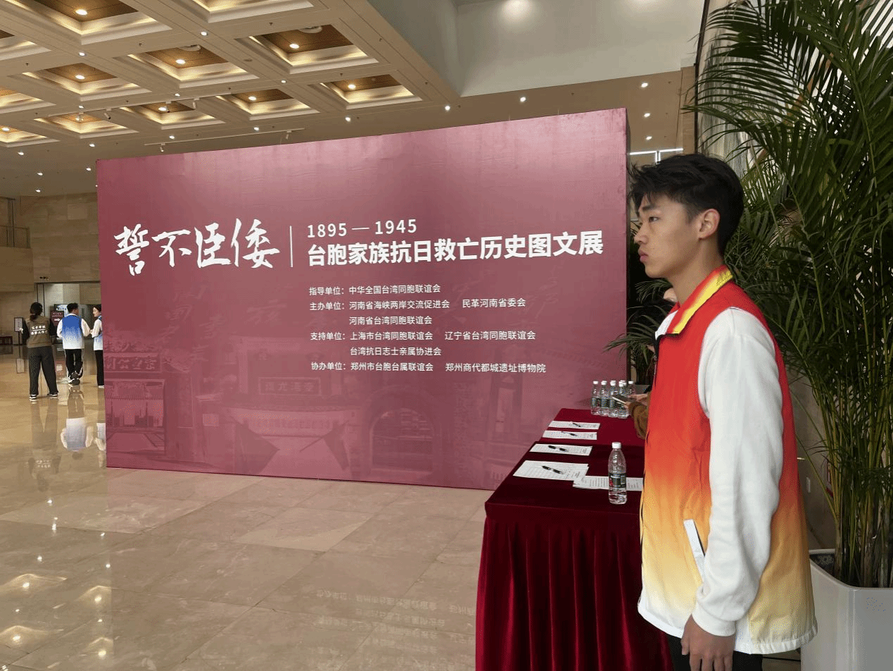 春回大地,万象更新👩🦳。乙巳年黄帝故里拜祖大典期间🧑🏽🌾,由全国台联指导👘、河南省台联等单位主办的“誓不臣倭——台胞家族抗日救亡历史图文展”暨纪念台湾光复80周年图片巡展于2025年3月28日至30日在郑州商都遗址博物院正式启动。我校积极响应号召,选派7名优秀师生组成志愿者团队🚠,全程参与展览的志愿服务工作。