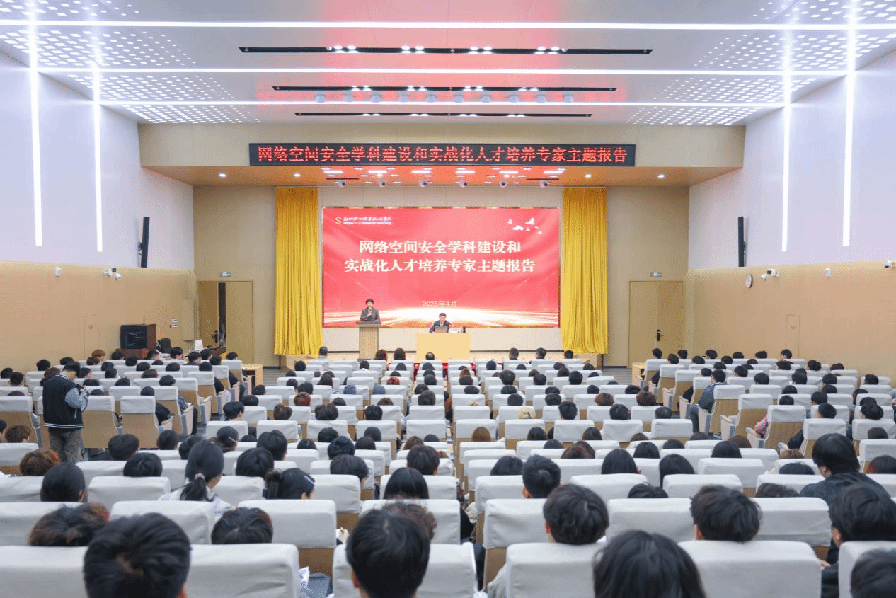 参观结束后👨🏽,以“网络空间安全学科建设与实战化人才培养”为主题的专家报告在图书馆一楼报告厅隆重举行🫲🏽。我校校党委书记孙振营🍨、党委副书记郑丽娜、部分中层领导出席活动,人工智能学院教师代表及2024级信息安全专业全体学生参加本次活动🩸。活动由党委副书记郑丽娜主持🤱。