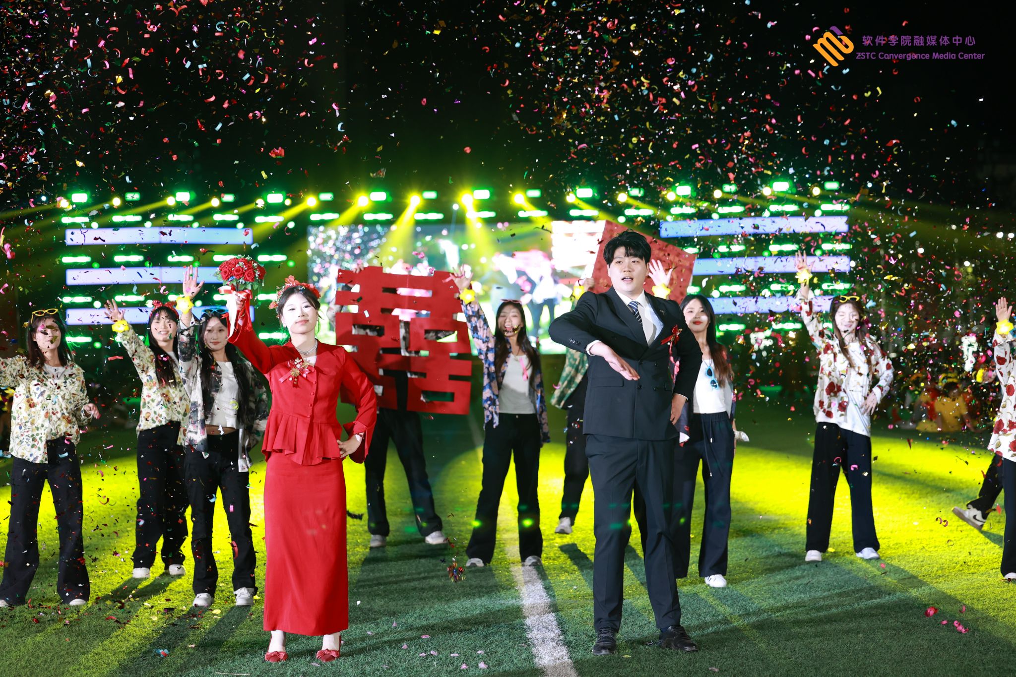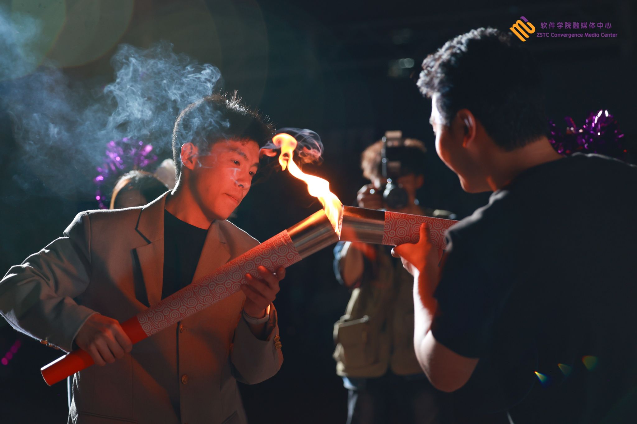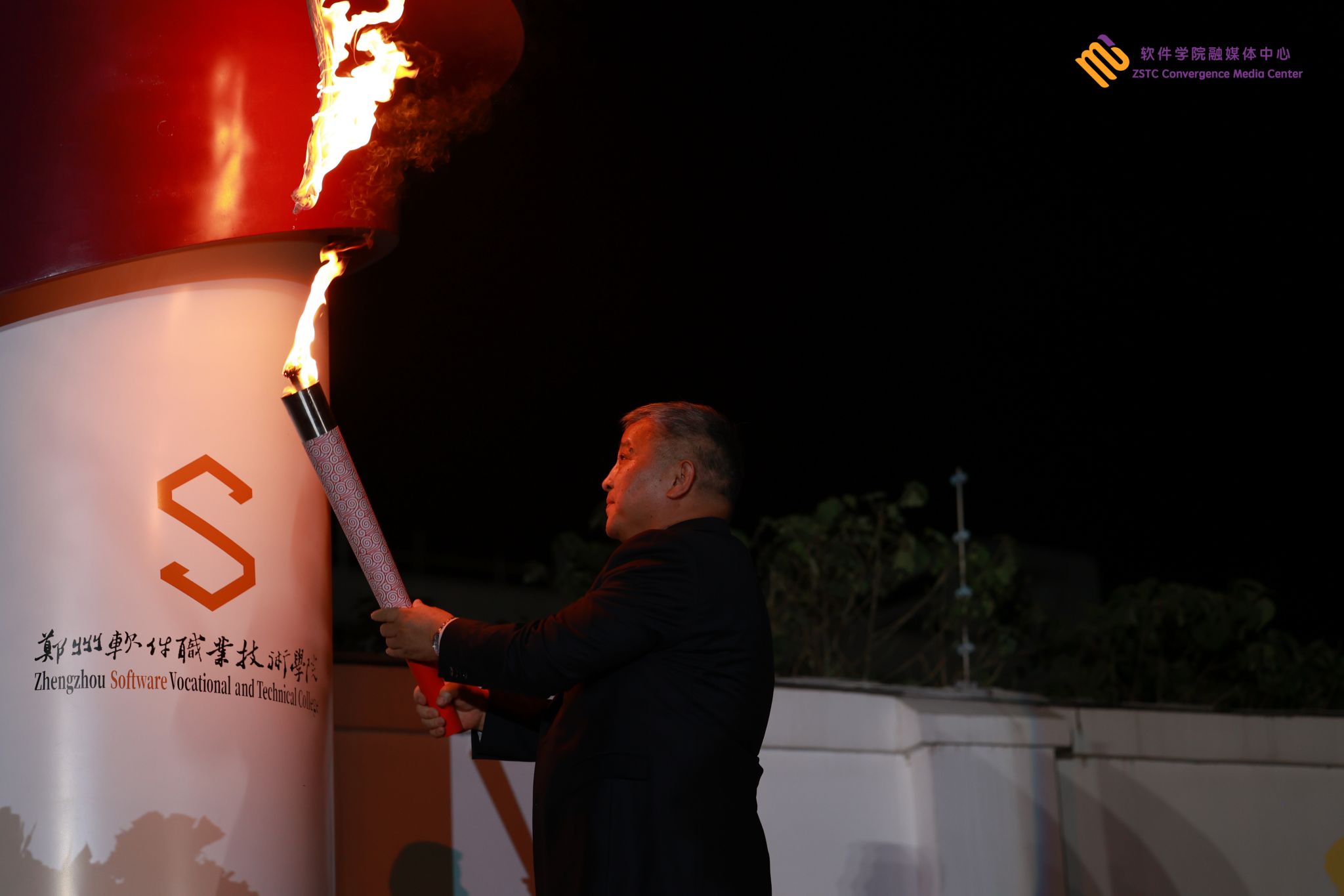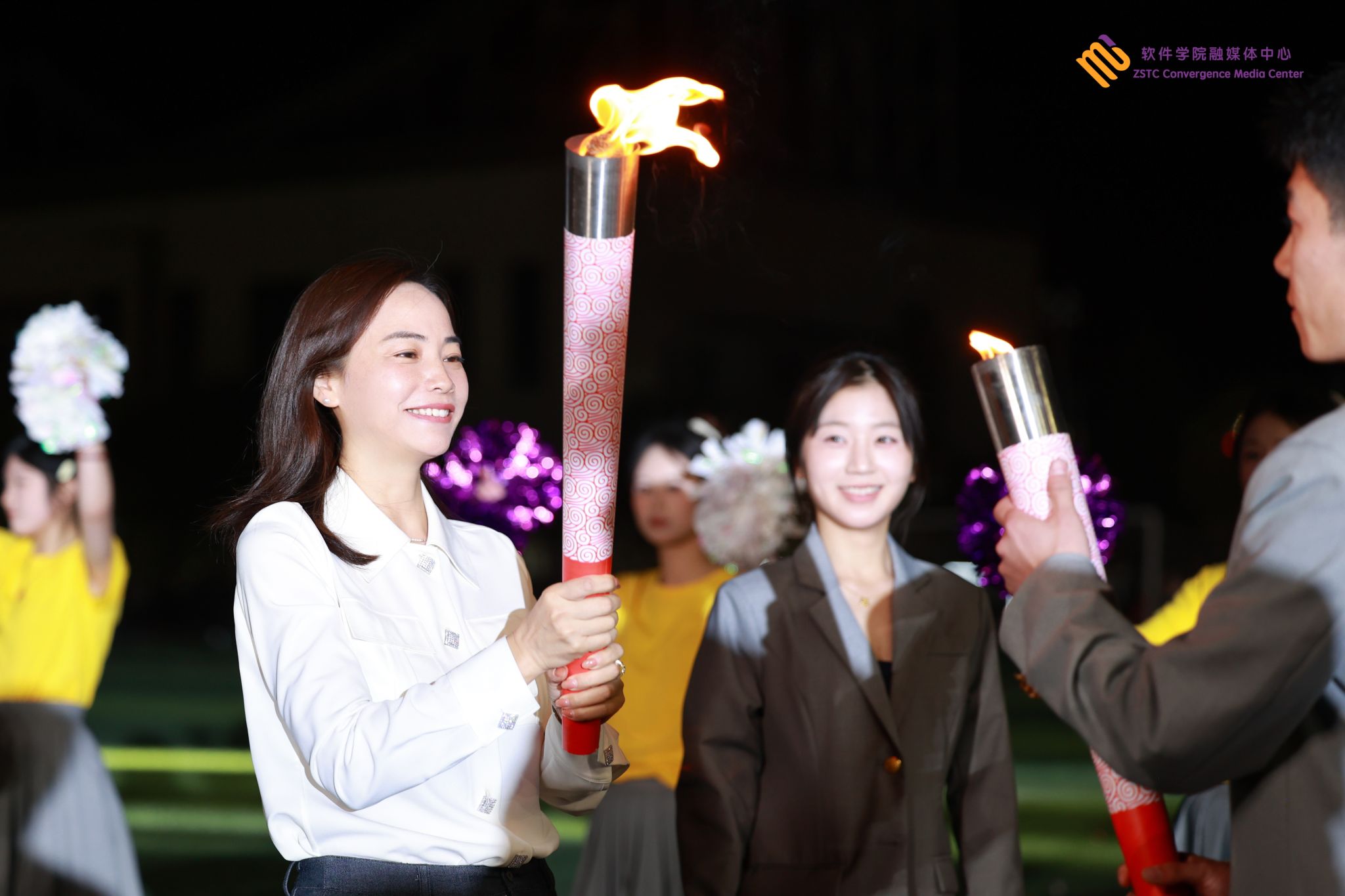 开幕式最后,师生共同点燃圣火、点燃梦想。在全场瞩目下,任艳丹董事长手持火炬🔳,带着梦想与希望传递至优秀学生代表白家琦手中,接下圣火,“以生为本、以爱育人”的辅导员代表郝志鹏传递至校长秦方奇教授手中,熊熊圣火在主火炬台冉冉升起🙋,璀璨烟花腾空绽放,寓意郑软精神薪火相传🛌🏽。