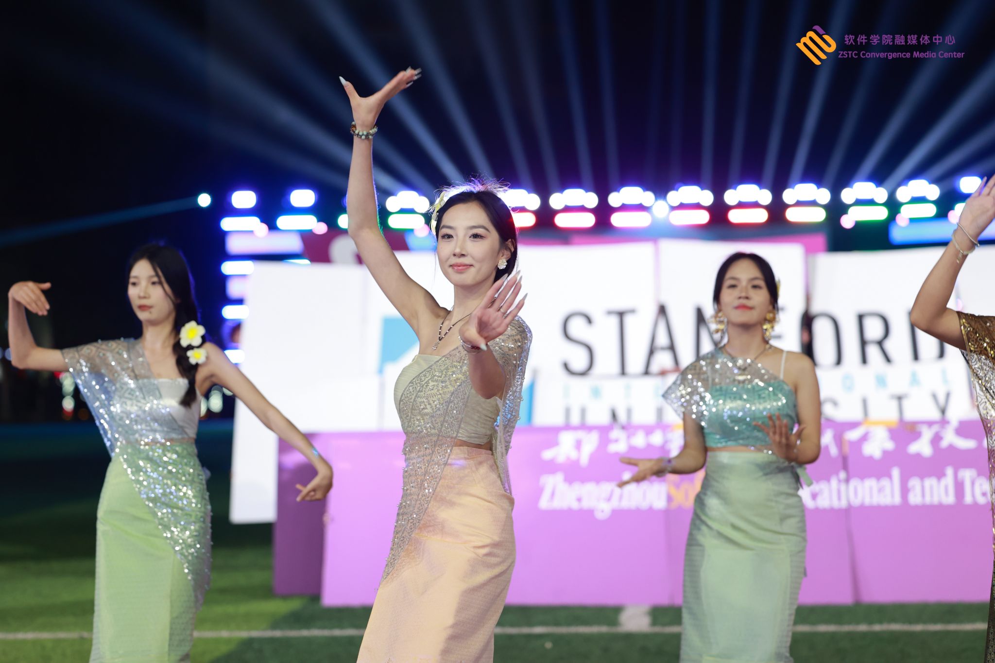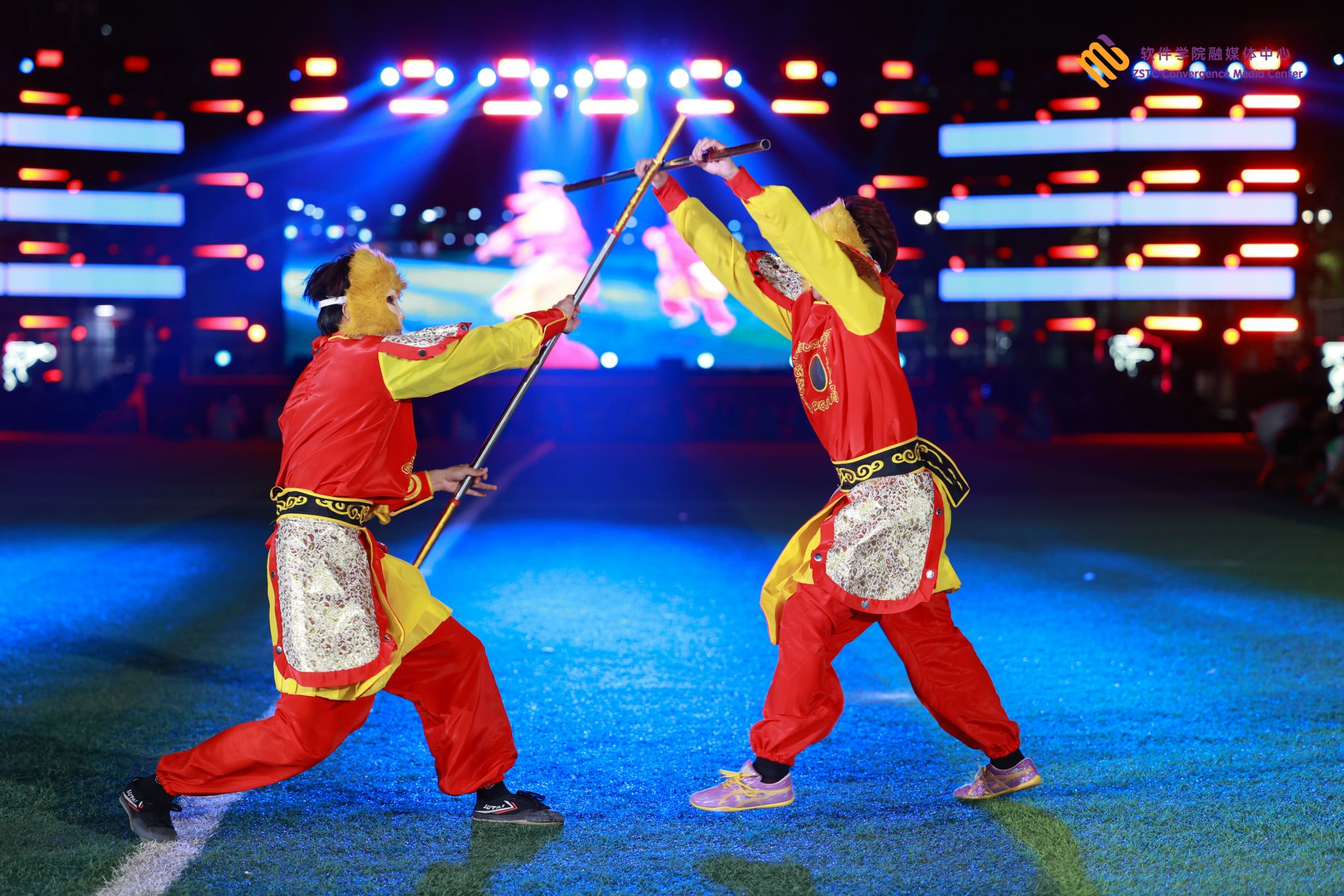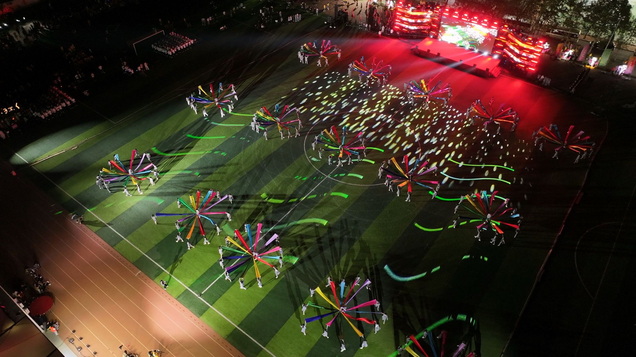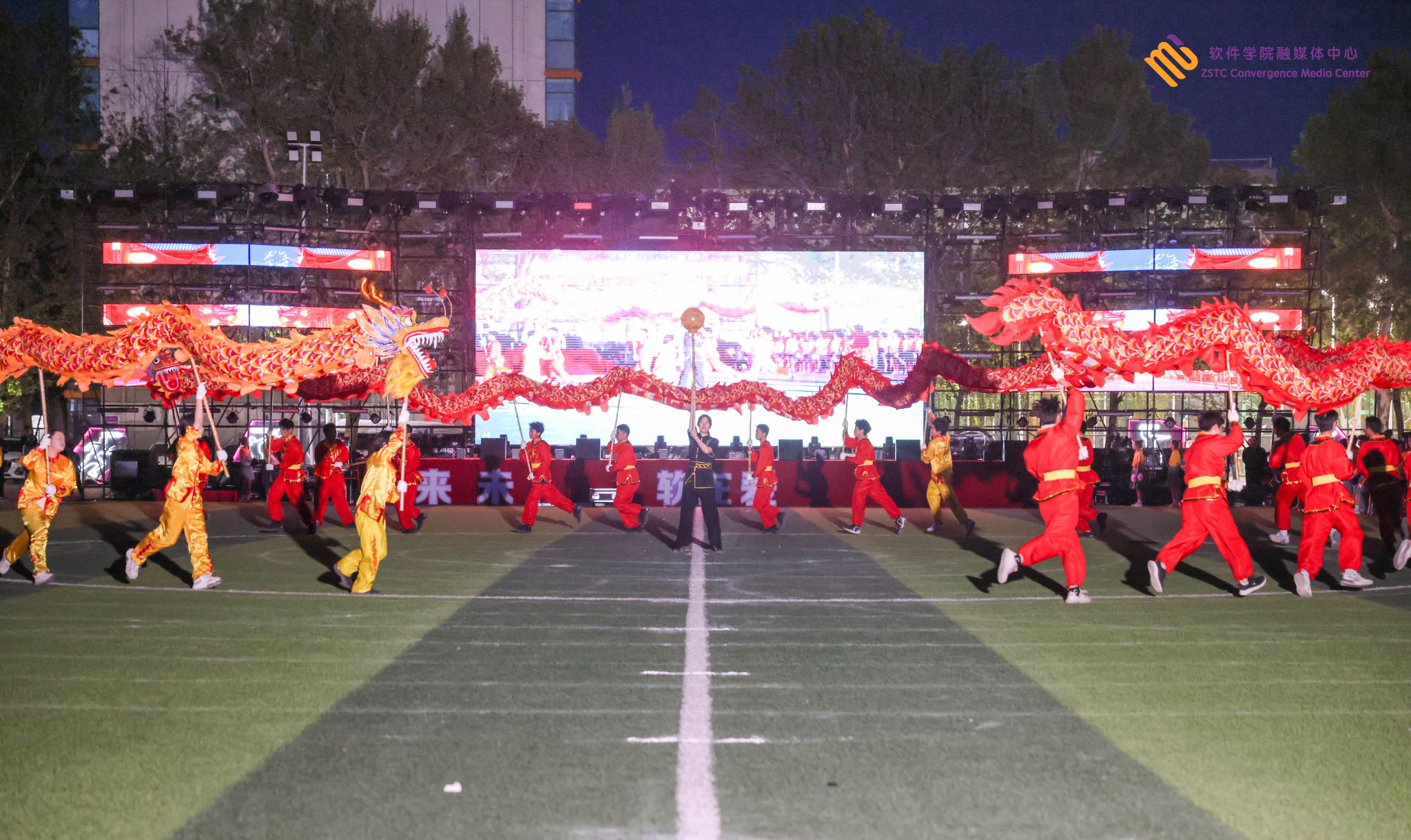 开幕式在激昂的倒计时中拉开帷幕。舞龙表演气势磅礴,瞬间点燃全场🍂;舞蹈《站在草原望北京》结合现代拉丁舞形式展现了辽阔的民族情怀;花球啦啦操《一起跳舞吧》与武术表演《郑风武韵》刚柔并济,诠释了传统与创新的交融;压轴节目《当那一天来临》以铿锵步伐演绎当代青年的担当🧏🏽♀️🫵,将现场氛围推向高潮,赢得师生阵阵欢呼🫶🏽。