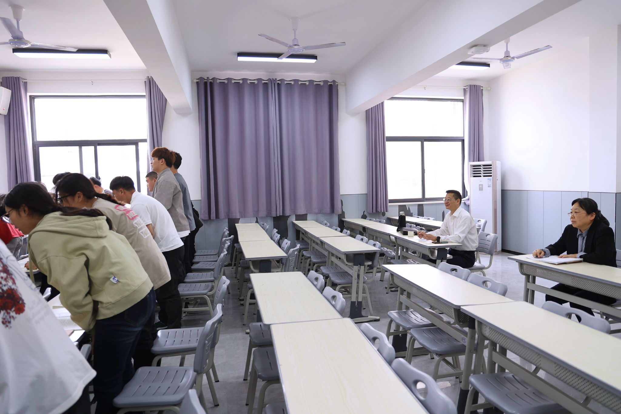 根据河南省教育工委🐚、河南省教育厅《关于开展2025年度全省高校春季学期思政课“大听课、大调研”活动的通知》工作安排,5月7日上午🧑🍳,由黄河科技学院马克思主义学院院长王振国🚵🏿♂️、郑州航空工业管理学院马院副教授王武等组成的第十五调研组莅临我校进行实地听课👨❤️💋👨、调研。校长秦方奇,党委书记孙振营,工会主席🪫、督查室主任马俊伟、教学督导李卫中教授💧、马克思主义学院院长王艳芳以及有关人员陪同参加了本次活动。