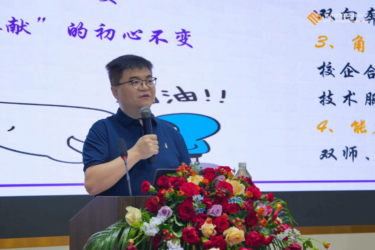 教务处处长王利凯以《师者的本真🫸🏿、价值与未来:AI时代职业院校教师的为与位》为题开讲。他指出,时代发展要求职业院校教师应对四方面变化:更新教学内容、优化方法促师生互动🫃🏽、适应校企合作下的角色增加、提升创新能力🤵🏻♀️🪴。