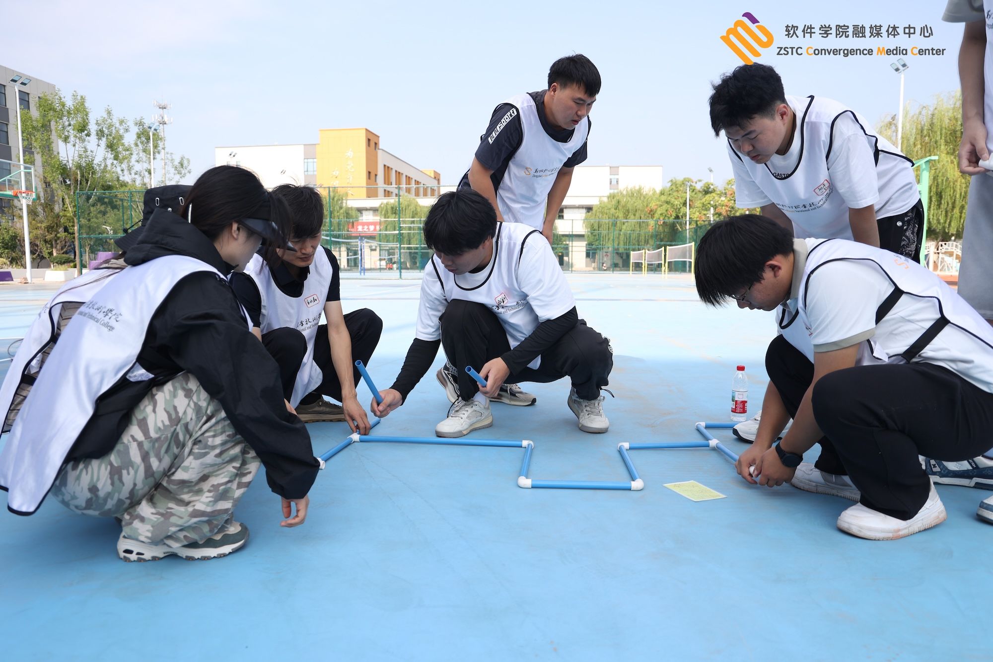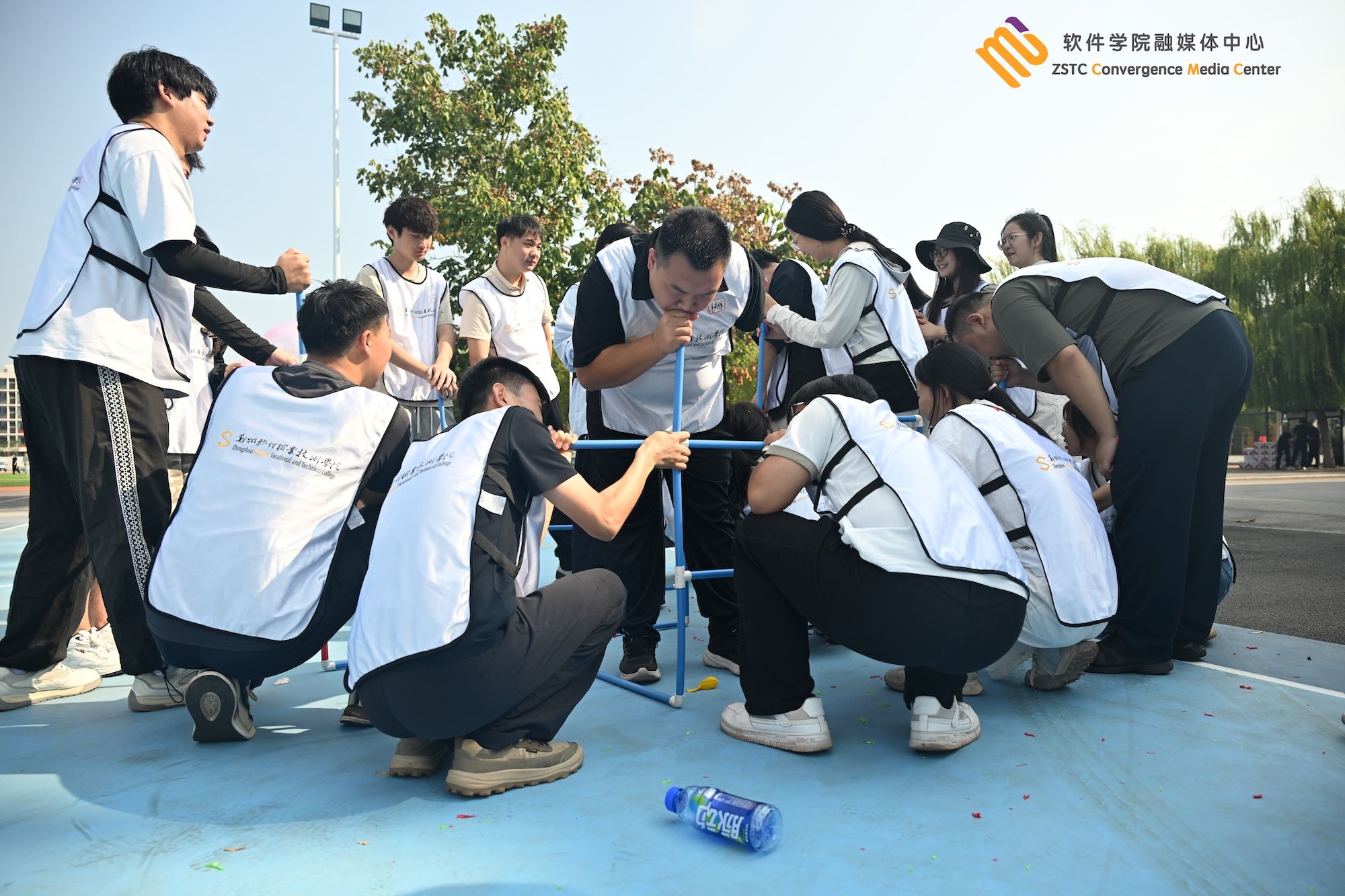 理论培训结束后😤,我校组织全体教职工开展素质拓展,学员随机分成七个团队🌰👰🏽♂️,通过“盲人方阵”“一圈到底”“激情节拍”等团建游戏,各团队共同迎挑战🐨、互支持、克难关🃏,既营造了热烈融洽的团队氛围,也提升了协作意识与能力♡,加深了彼此了解与信任🧑🏽💼。