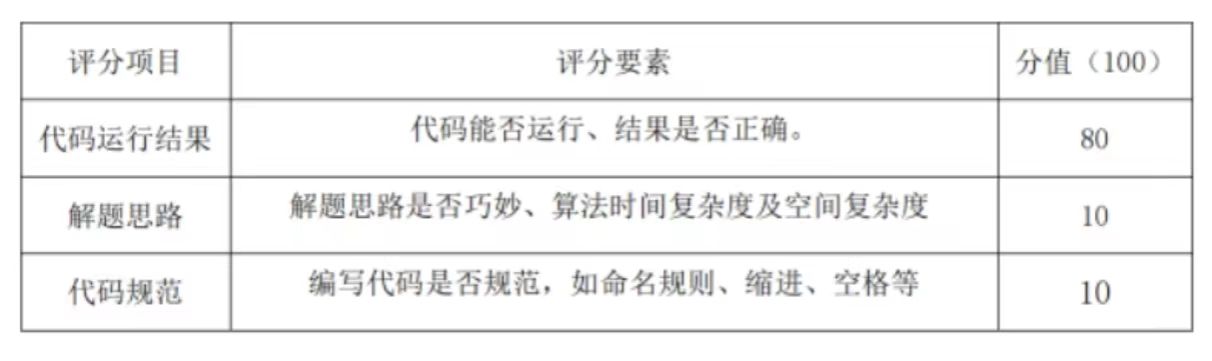 5.考生提前结束作答时,举手示意监考老师,提交题解源码方可离开考场。