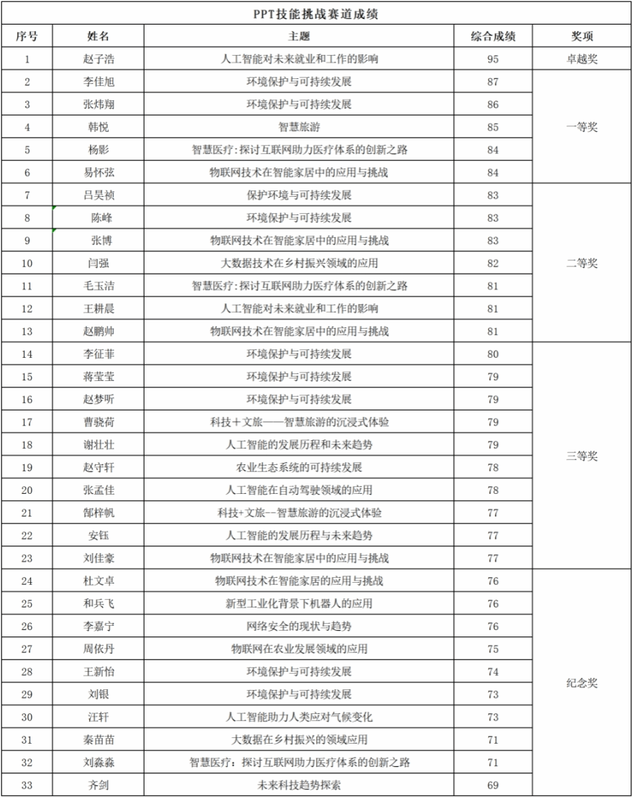 PPT技能挑战赛卓越奖1名、一等奖5名、二等奖7名、三等奖10名🎠、纪念奖10名;