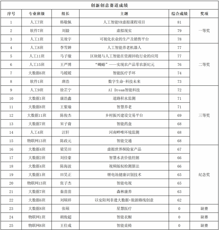 创新创意赛道一等奖3名🎅🏼、二等奖5名👩🏻🦯、三等奖7名💅🏽、纪念奖7名;