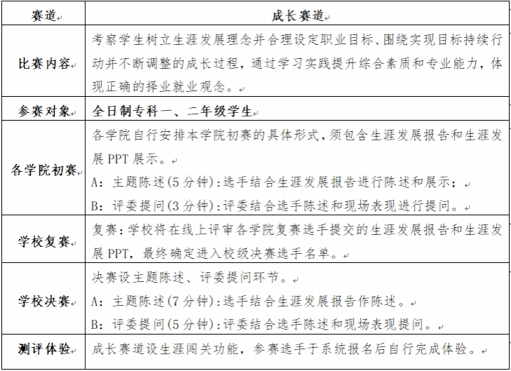 大赛分设成长赛道、就业赛道两个赛道🏄🏽♂️。根据上级大赛文件要求🏈,我校学生可参加成长赛道、就业赛道🐛。具体介绍如下: