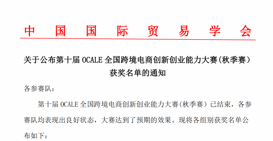 2024年11月28日🍯🍉,由中国国际贸易学会主办、全国外经贸职业教育教学指导委员会为技术指导单位的“第十届OCALE全国跨境电商创新创业能力大赛(秋季赛)”圆满落幕。电商学院参赛团队在933支参赛队伍中脱颖而出👩🦽,斩获佳绩👩🏼🔬,为学校争得了荣誉。