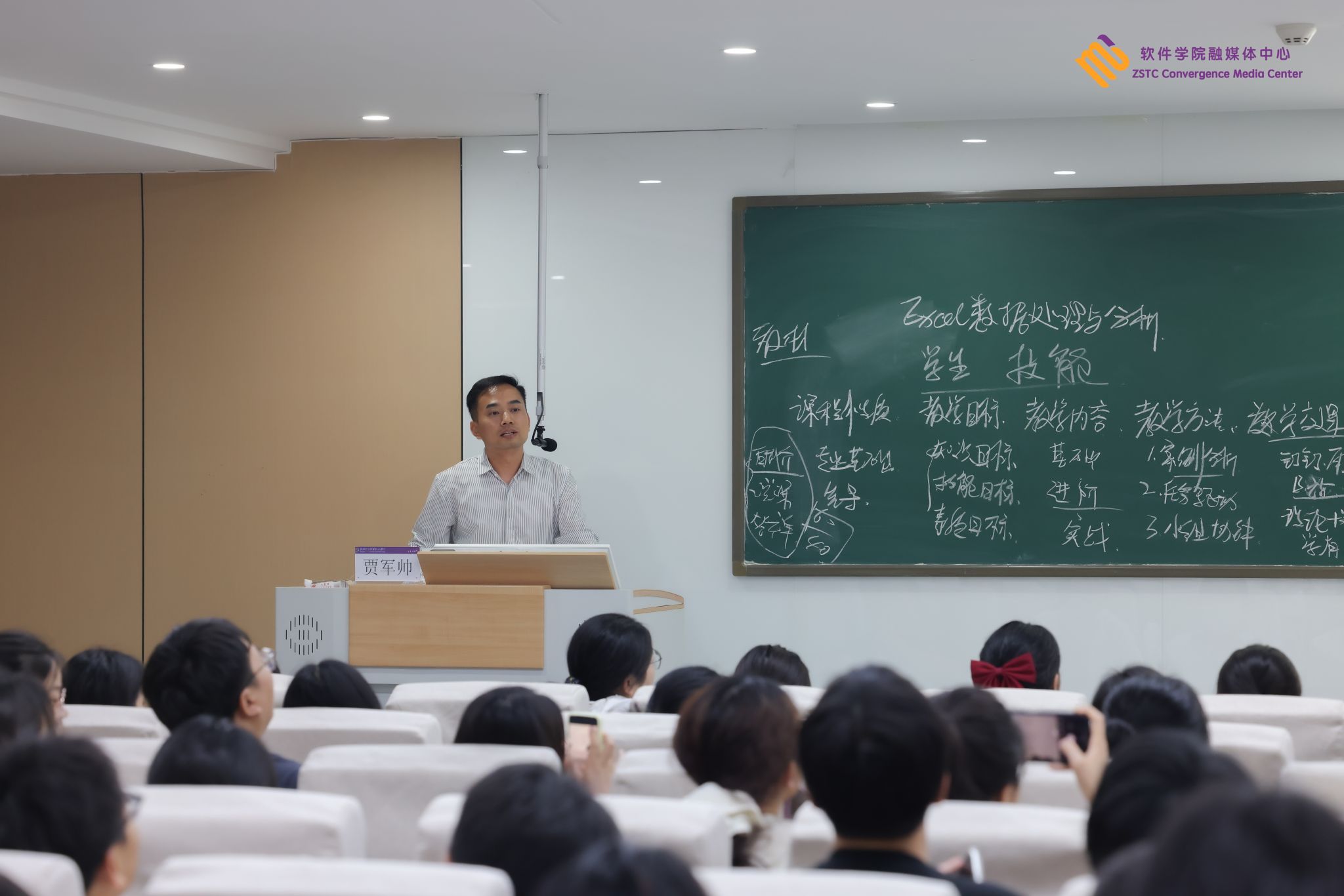 随后,贾军帅老师进行说课示范。他依托实际案例,生动展示了说课的完整流程🧑🏽🔬,包括教材分析、教学目标设定♘、教学方法选择🧅、教学过程安排以及板书设计等环节,让考生们直观感受到优秀说课的呈现方式,对说课有了更清晰的认知。